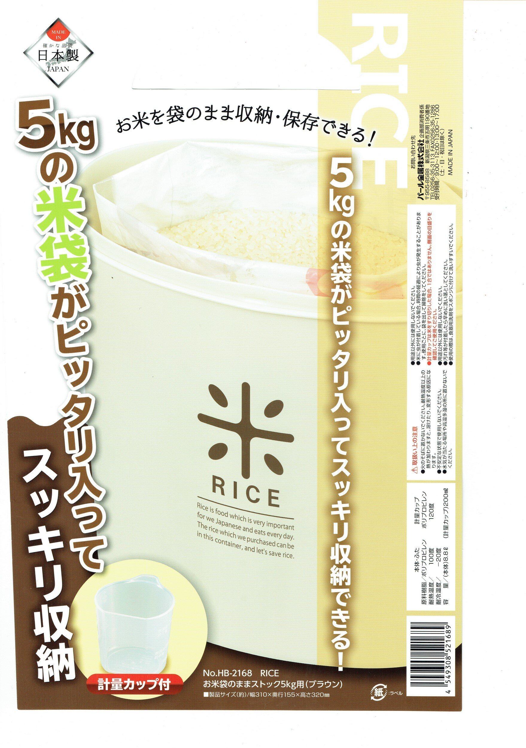 パール金属 日本製 米びつ 5kg ブラウン 計量カップ付 お米 袋のまま ストック RICE HB-2168