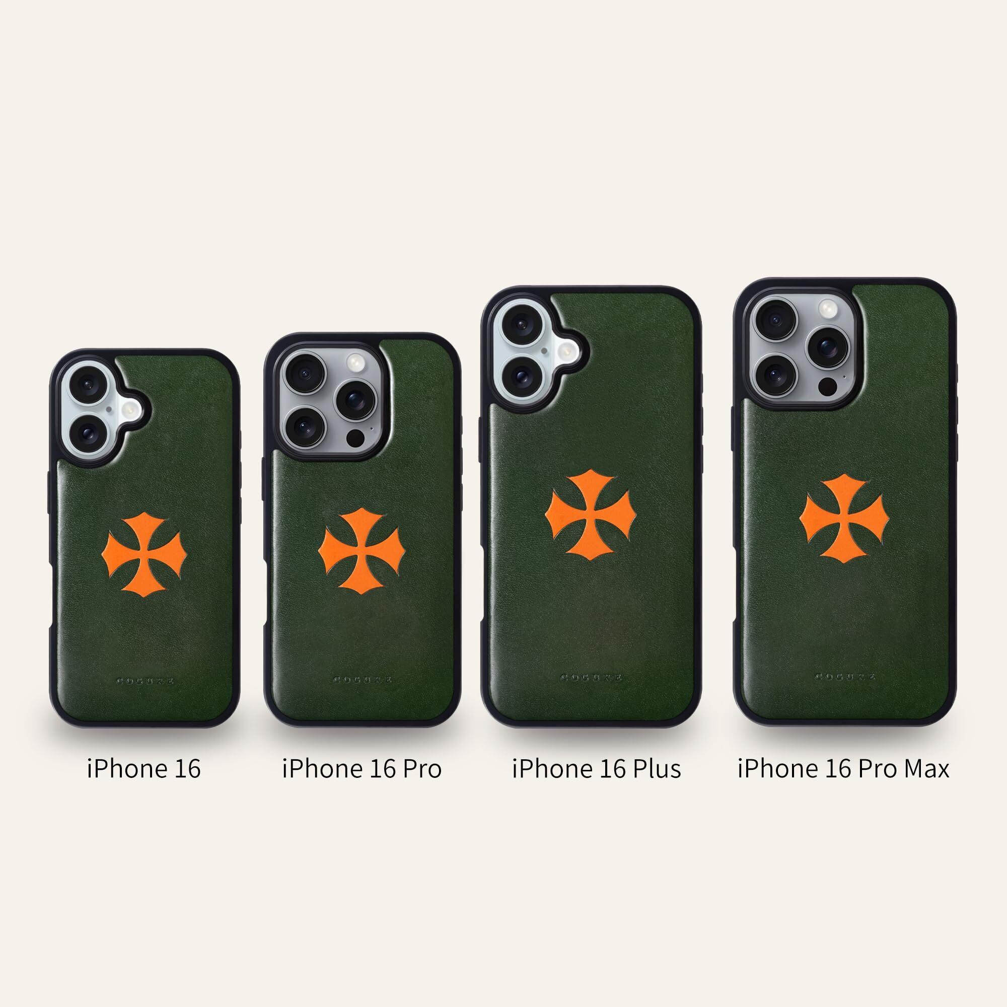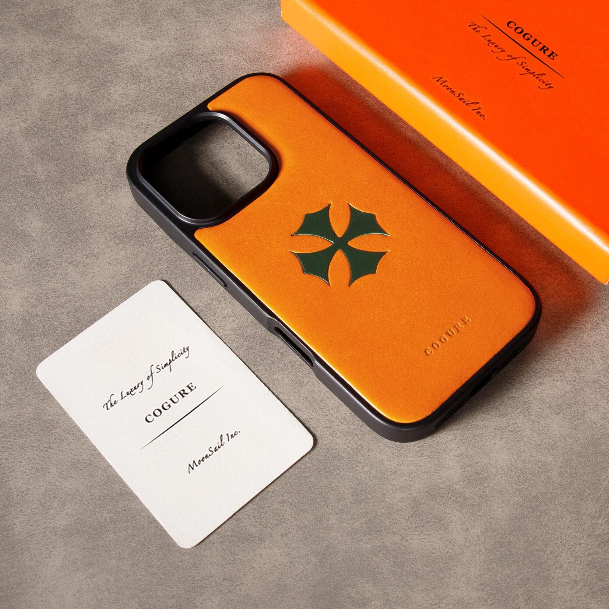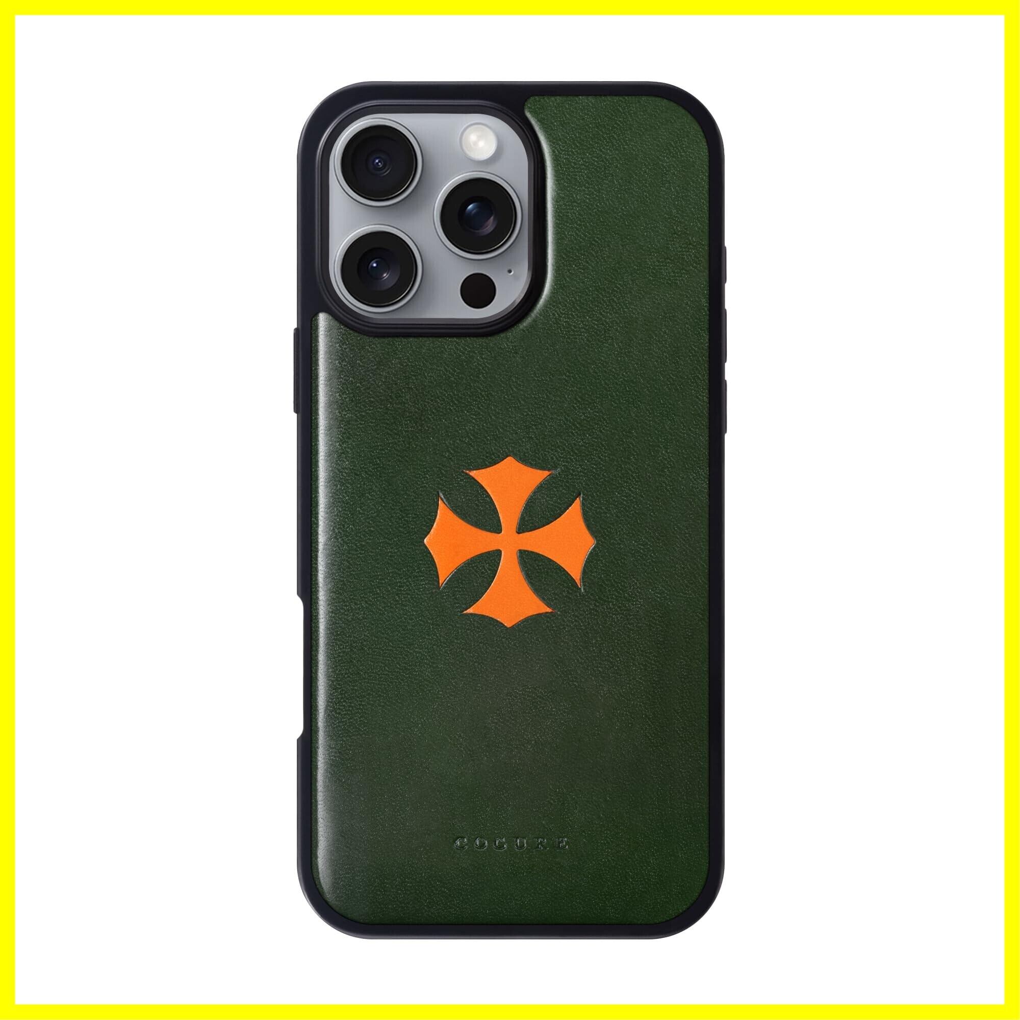 COGURE スマホケース iPhone16ProMax用 ケース 本革 イタリアンサドルレザー 耐衝撃 シンプル おしゃれ ギフトボックス付き COTCross クロスモチーフ グリーン