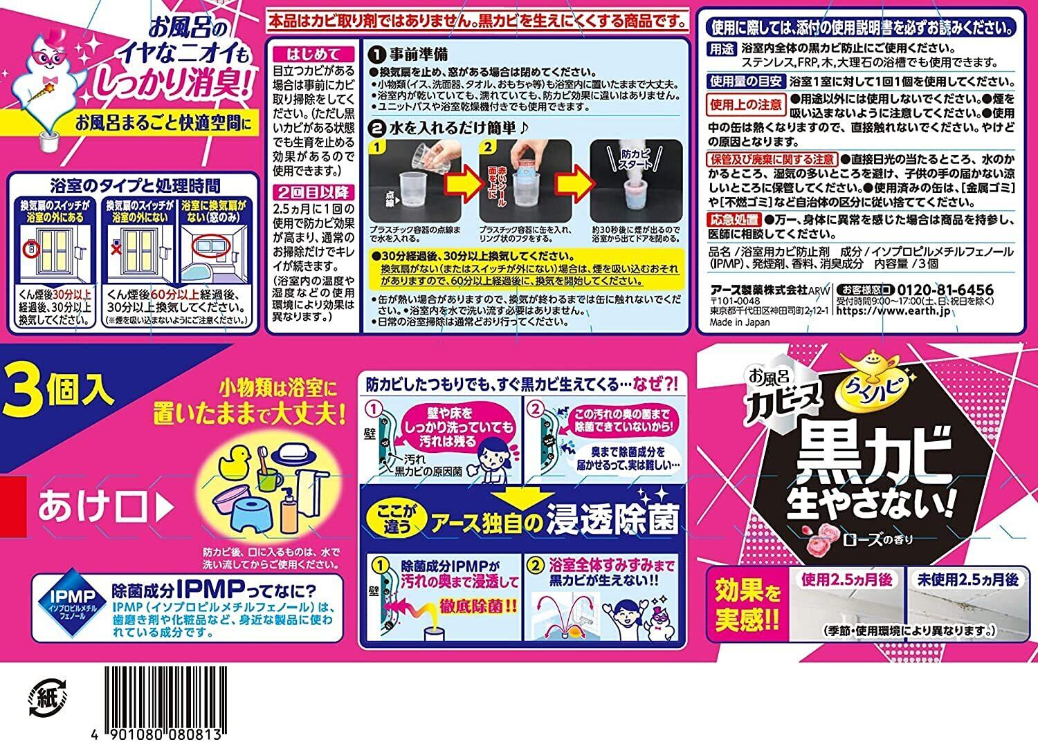 らくハピ お風呂カビーヌ 防カビくん煙剤 ローズの香り 3個パック 浴槽 浴室 カビ予防 カビを防ぐ 防カビ剤 くん煙タイプ お風呂掃除 大掃除
