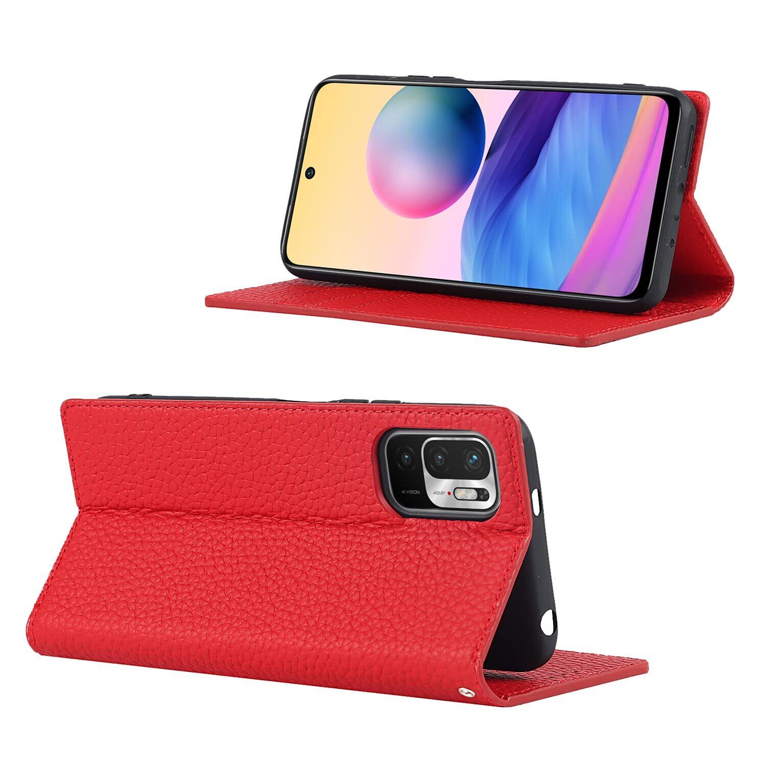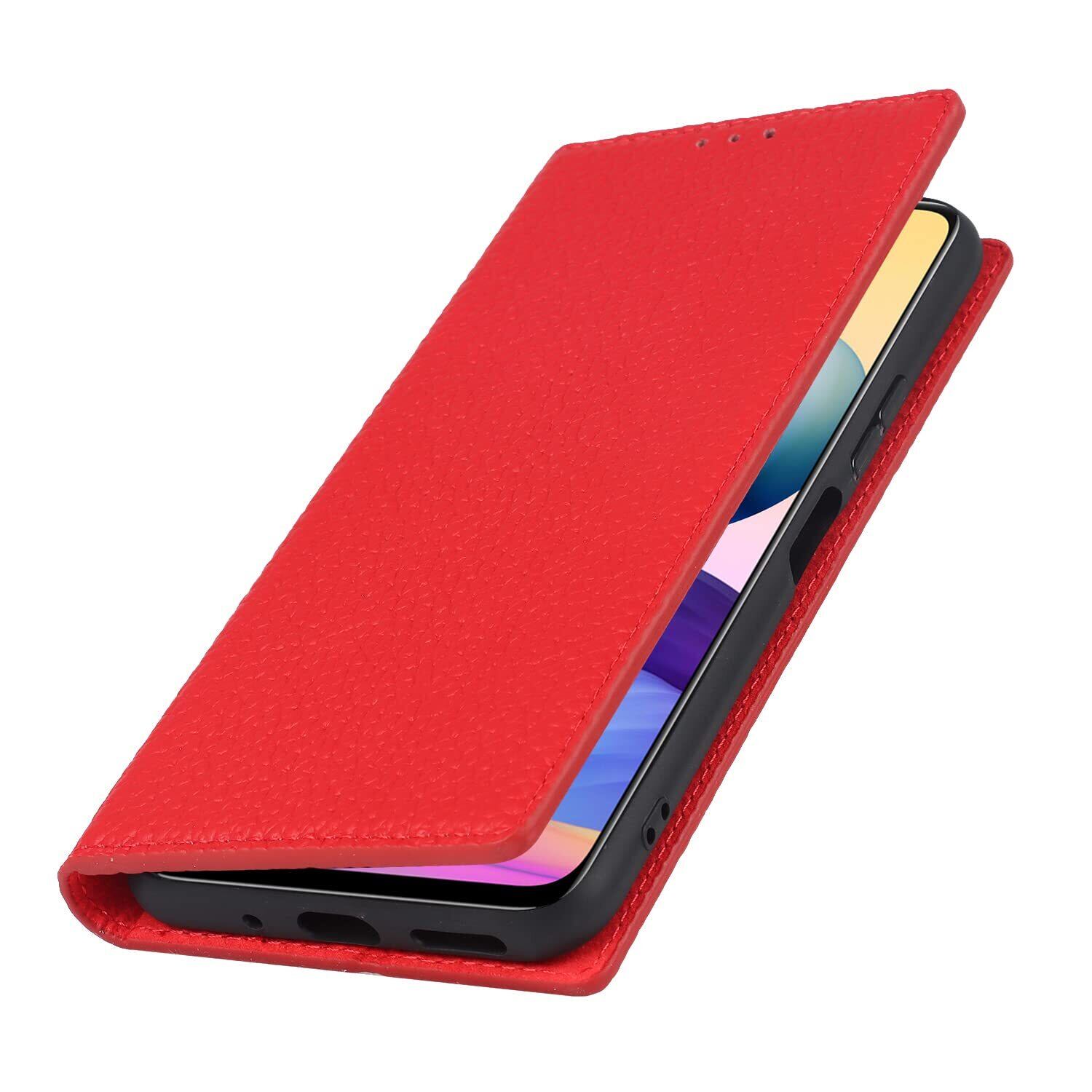 Eastwave for Xiaomi Redmi Note 10 JE ケース 本革 牛革 for Redmi Note 10Tケース 手帳型 for Redmi Note10 JE XIG02 カバー 手帳 本革 柔らかい 本皮 スプラットホール付き スプラット同梱 内蔵マグネット-レッド