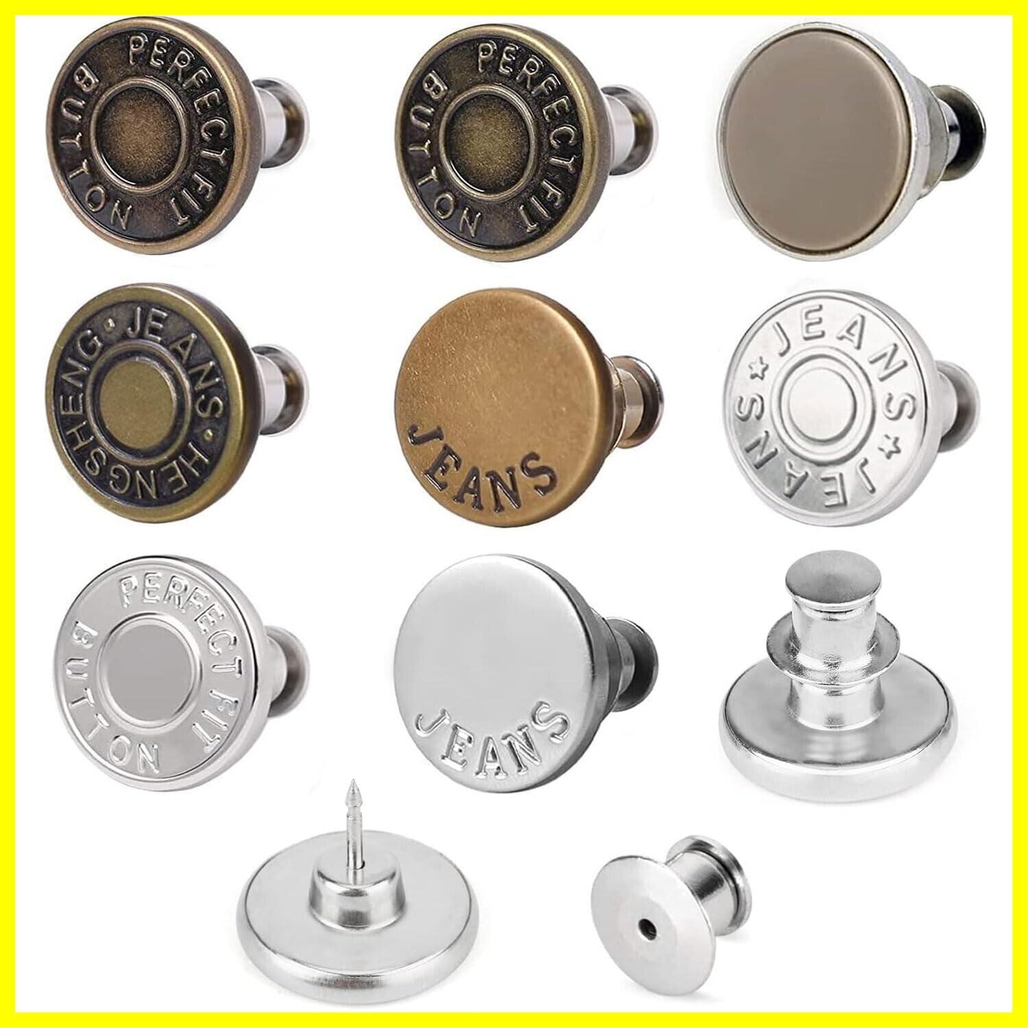 ウエスト 調整 ジーンズ 調整ボタン 1セット8個入り 調節可能な金属ボタン メタルボタン ウエスト調節ピン 取り外し可能 ウエストシンカー 縫製不要 交換用ピース