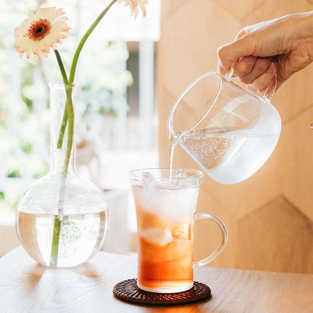 耐熱ガラスなので、アイスドリンクもホットドリンクにも使えます。持ちやすい軽さのユニバーサルデザインタンブラー。