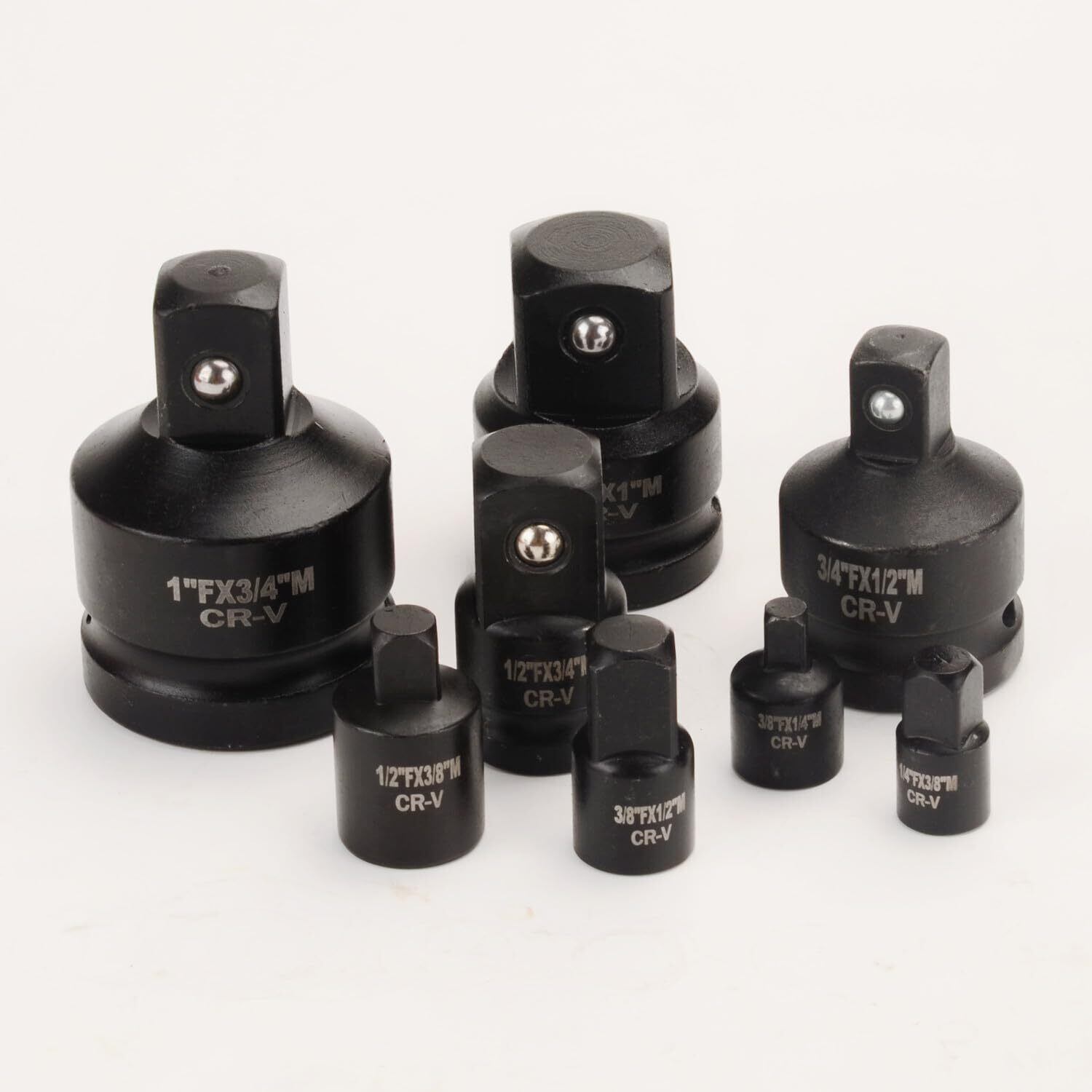 自動車・バイク・トラック整備に使用する5規格【1"(25.4mm)、1/4"(6.35mm)、3/8"(9.5mm)、1/2"(12.7mm)、3/4"(19mm)】のインパクト用ソケット変換アダプターとなります。インパクトレンチのサポート工具。
