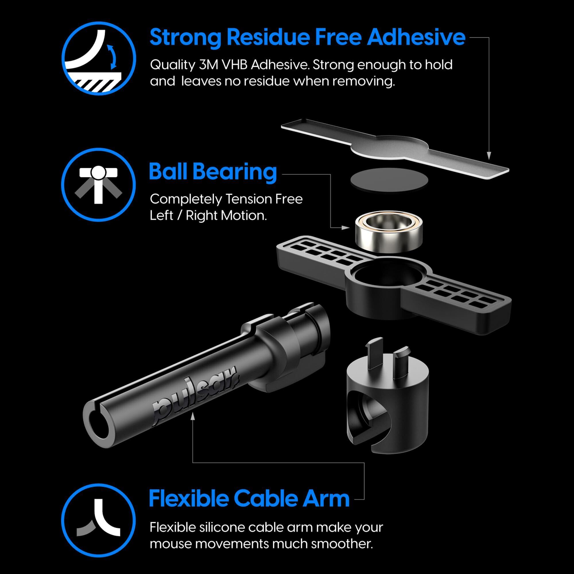 Pulsar Gaming Gears マイクロバンジーES マウスバンジー ケーブル ホルダー 有線マウスサポート 超コンパクトサイズ モニター下部に貼付 国内正規品 (1個入り) ブラック