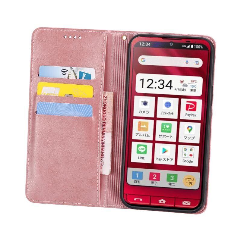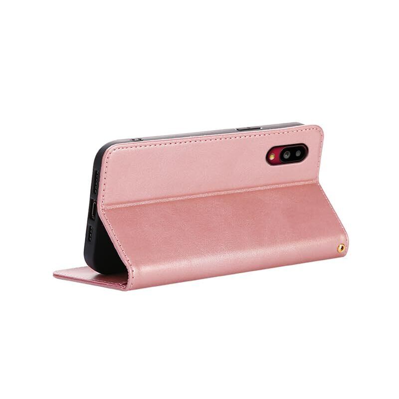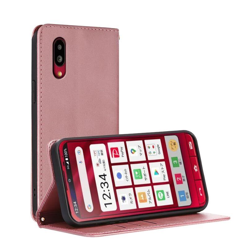 シンプルスマホ6 / シンプルスマホ7 ケース 手帳型 A201SH / simple sumaho6 /simple sumaho7/ BASIO active SHG09/ BASIO active2 SHG12 ケース 手帳型 カバー PUレザー カード収納 財布型 耐衝撃 ケース マグネット スタンド機能付き (ライトローズゴールド)