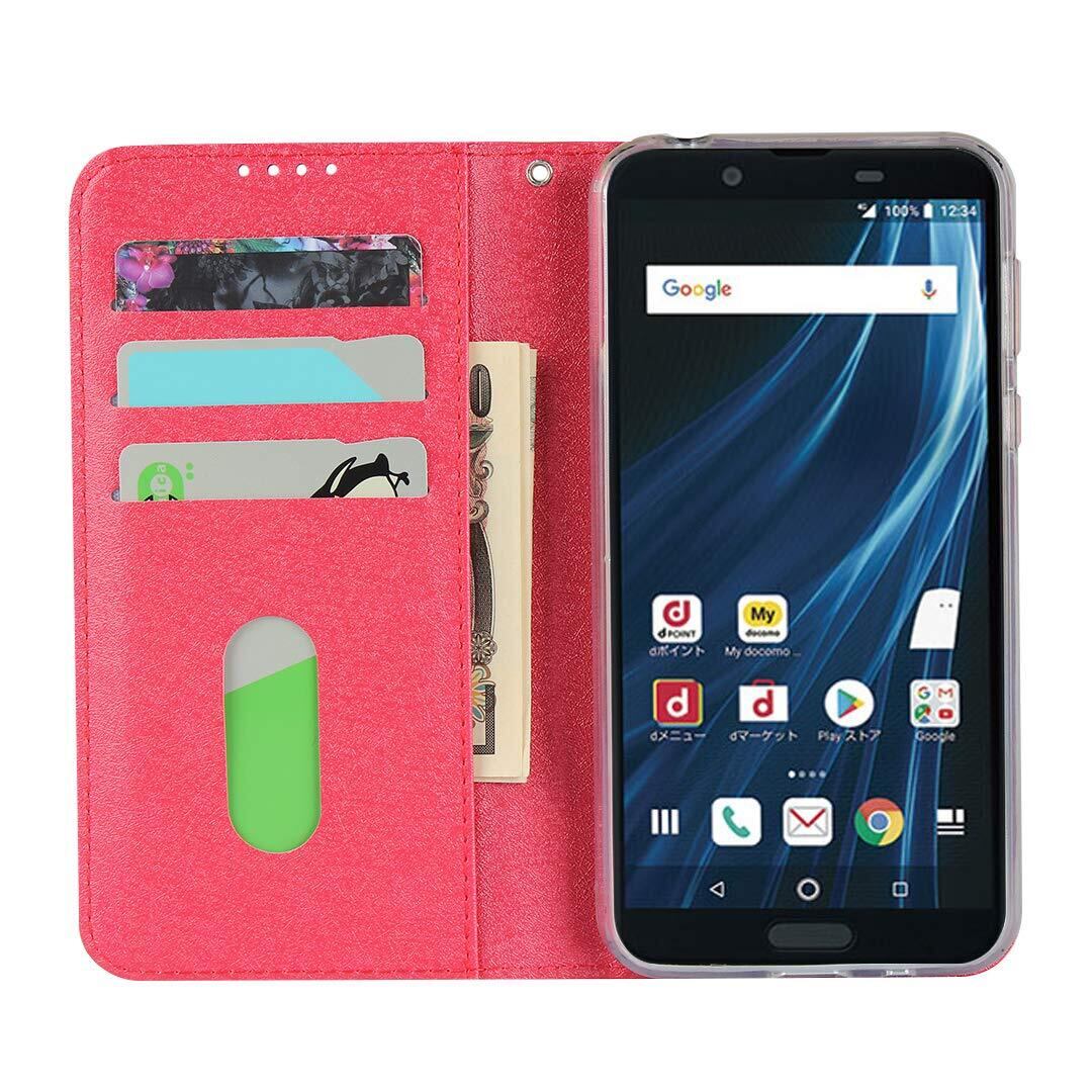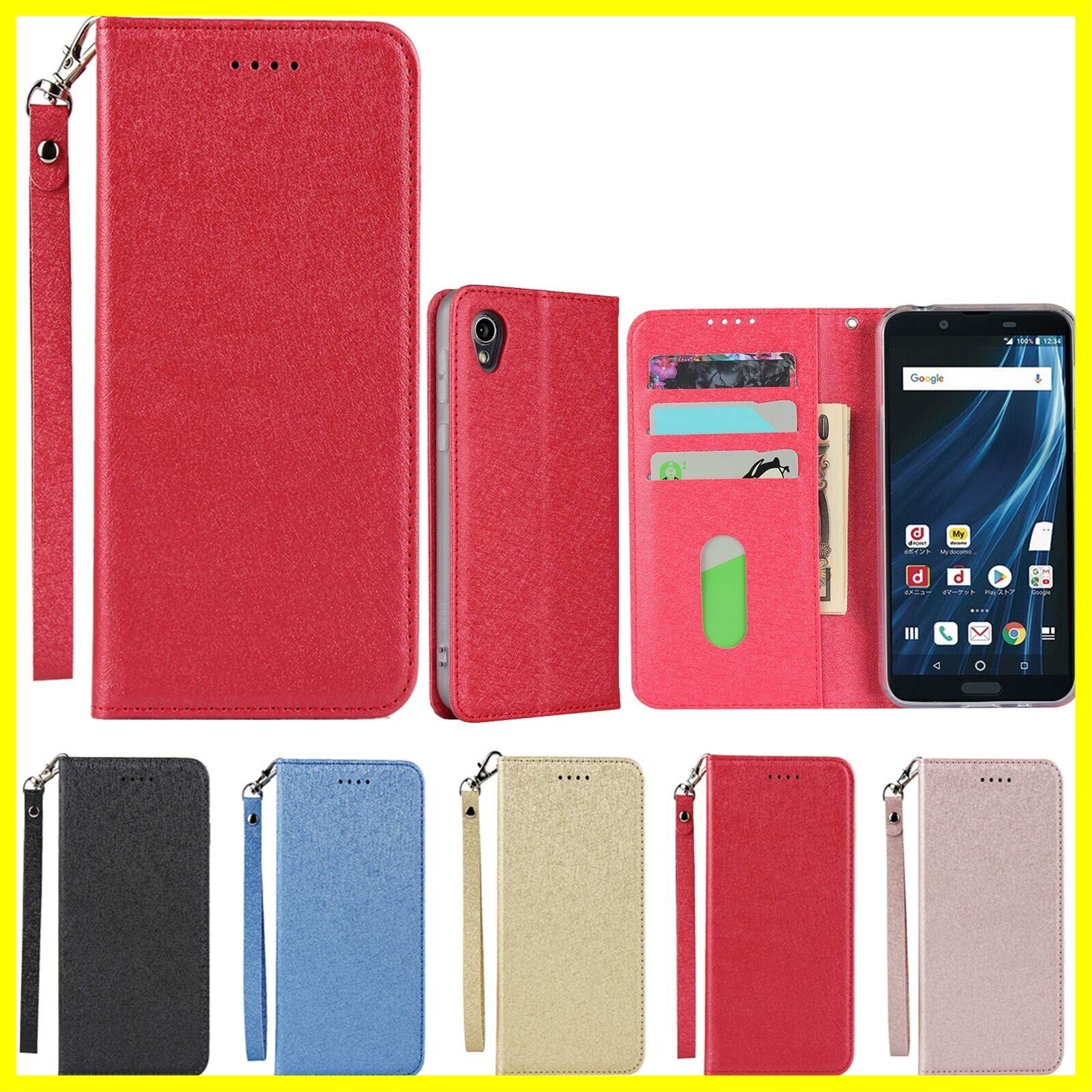 Sharp AQUOS Sense2 SH-01L / SHV43 / SH-M08 ケース / Sense 2 SH01L ケース 手帳型 case ストラップ付き PU皮革 明るい色 内蔵マグネット 携帯カバー カードポケット スタンド機能 便利 レッド
