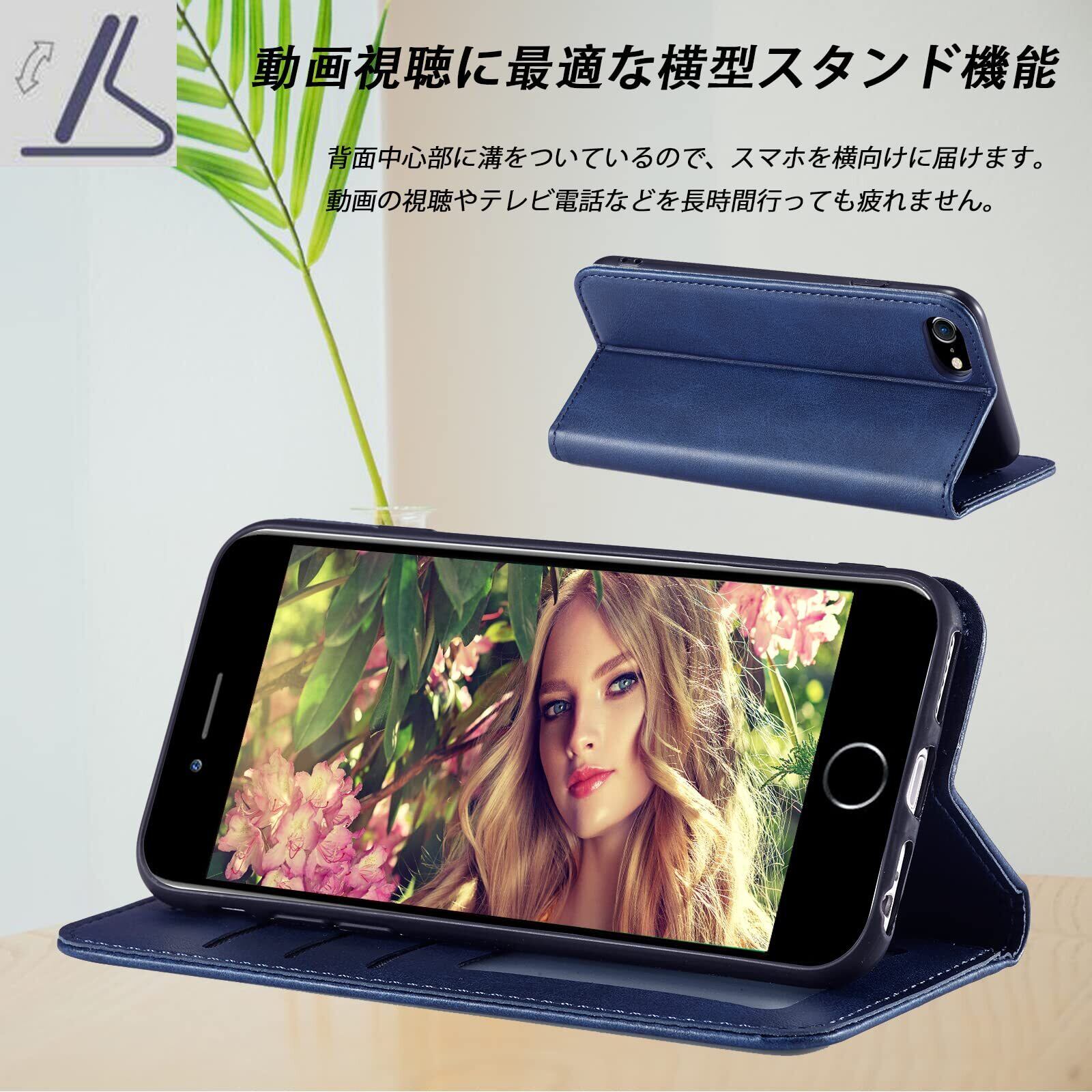 iPhone SE ケース 第3世代 手帳型 スマホケース se3 カバー iPhone7/8/SE2020/SE2022 4.7インチ対応 ブルー