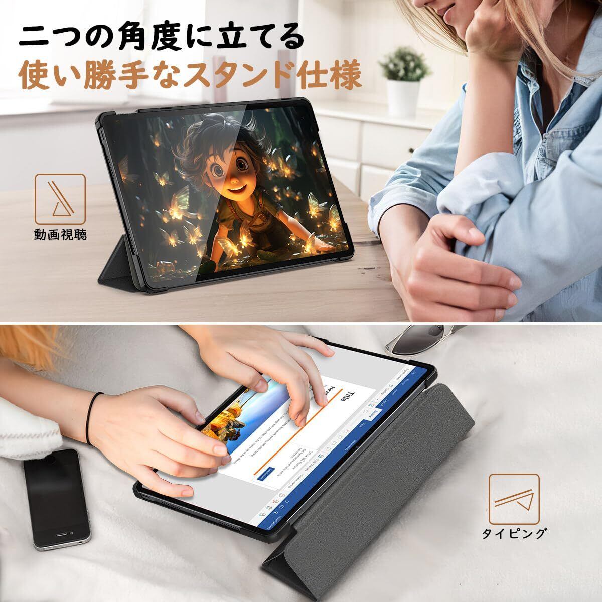 「上質な素材採用」 蓋表面は手触りが良く高級感のあふれる耐久性に優れた高級PUレザーで、バックケースは耐衝撃性の高く頑丈なPC素材を採用しており、裏地材質は液晶表面に優しいマイクロファイバーの仕上がりで、タブレット本体をやわらかく包み込みながら、不意による落下の衝撃から緩和できて、タブレットに最高の保護力を提供してくれます。