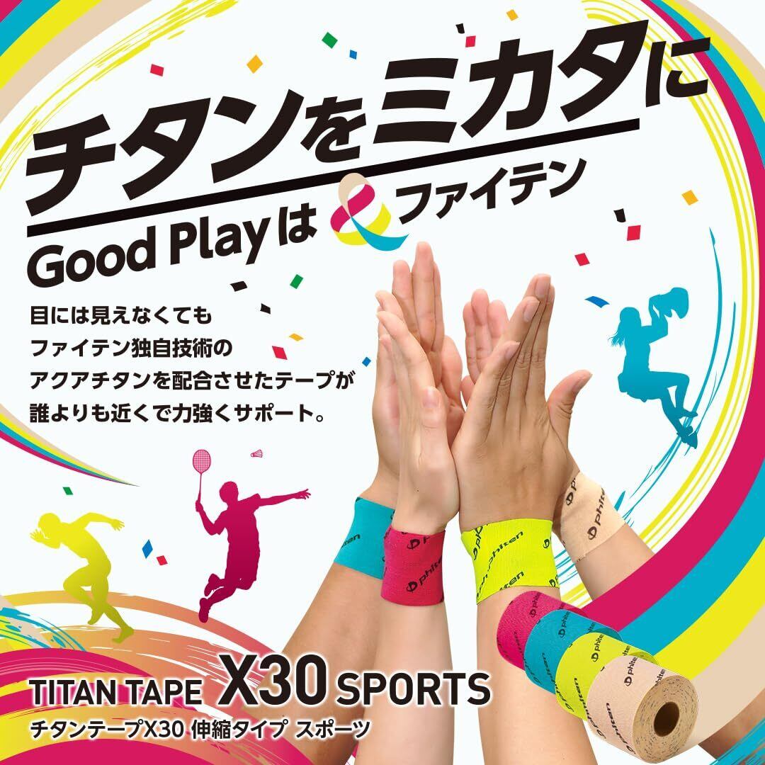 ファイテン(phiten) チタンテープX30 伸縮タイプ スポーツ 5.0cm×4.5m 4色展開(ターコイズ/ピンク/イエロー/ベージュ) アクアチタンX30 肩こり 首こり 腰痛 テーピングテープ 伸縮性 はがれにくい 筋肉疲労ケア ケガ予防 ランニング マラソン 卓球バレーボール テニス バドミントン ゴルフ クライミングトレーニング パフォーマンスサポート 男女兼用