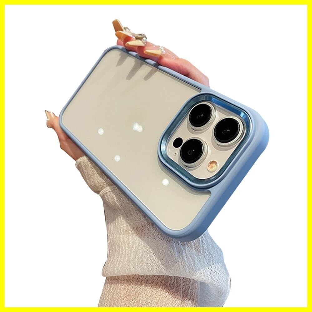 iPhone 13 ケース ストラップホール付き クリア 透明 iPhone13 カバー 2色 配色 薄型 可愛い レディース アイフォン13 背面ケース ハードケース (iPhone13, ブルー)