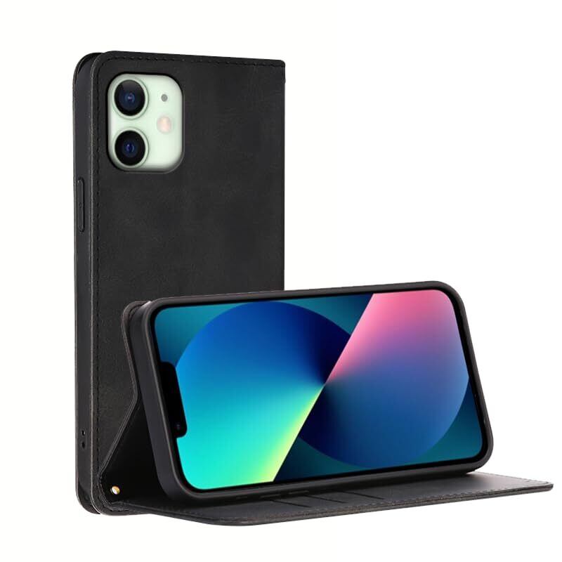 適用 iPhone12 mini ケース 手帳型 適用 iPhone 12mini 手帳型ケース スマホケース カバー 手帳型 PUレザー カード収納 財布型 耐衝撃 ケース マグネット スタンド機能付き 5色(いphone12 mini 用 ケース手帳型) (ブラック)
