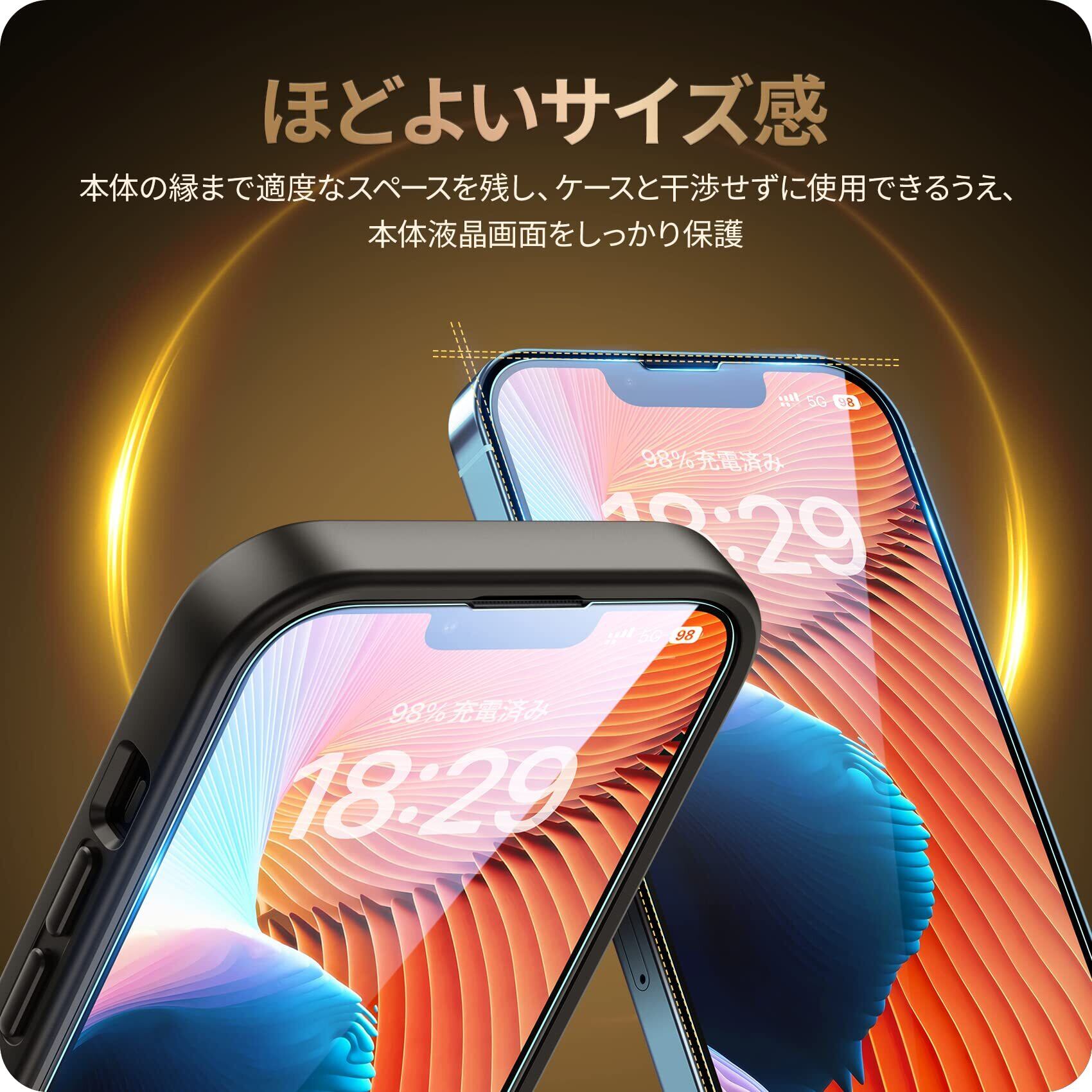 【ほどよいサイズデザイン】iPhone本体の縁まで適度なスペースを残すデザインとなっており、フィルムの剥がれや浮き上がりを防止し、スマホケースと干渉せずに快適に使えます。