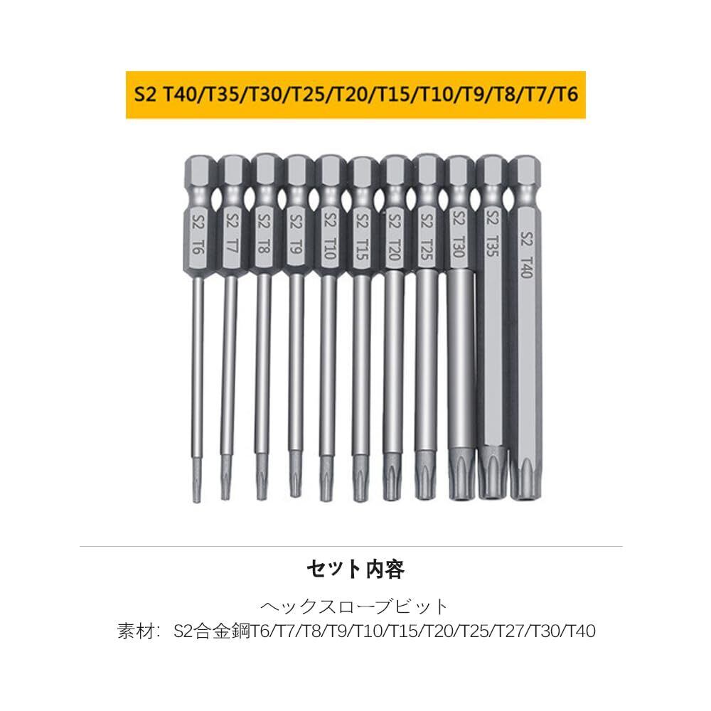 【セット内容】ヘックスローブビット。素材:S2合金鋼T6/T7/T8/T9/T10/T15/T20/T25/T27/T30/T40
