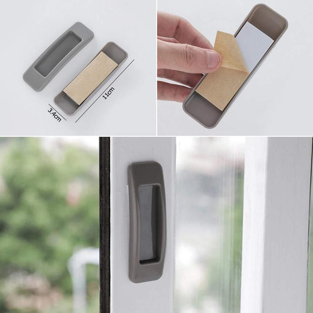 取っ手 2個セット 引戸用取手 引き戸開閉補助 引き戸 引き手 窓/網戸/引き出し/戸棚/ドア用 両面テープ式 I型 補助ハンドル 楽ちん引手 便利グッズ (グレー)