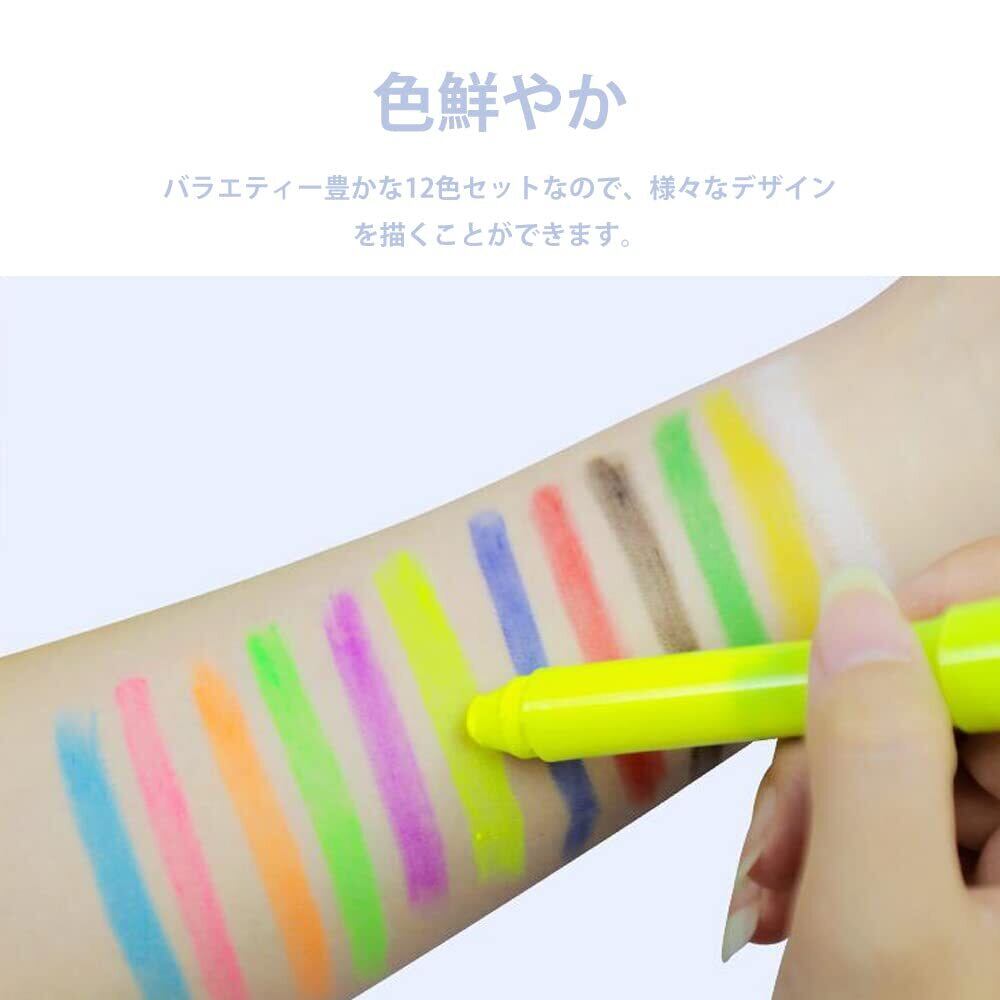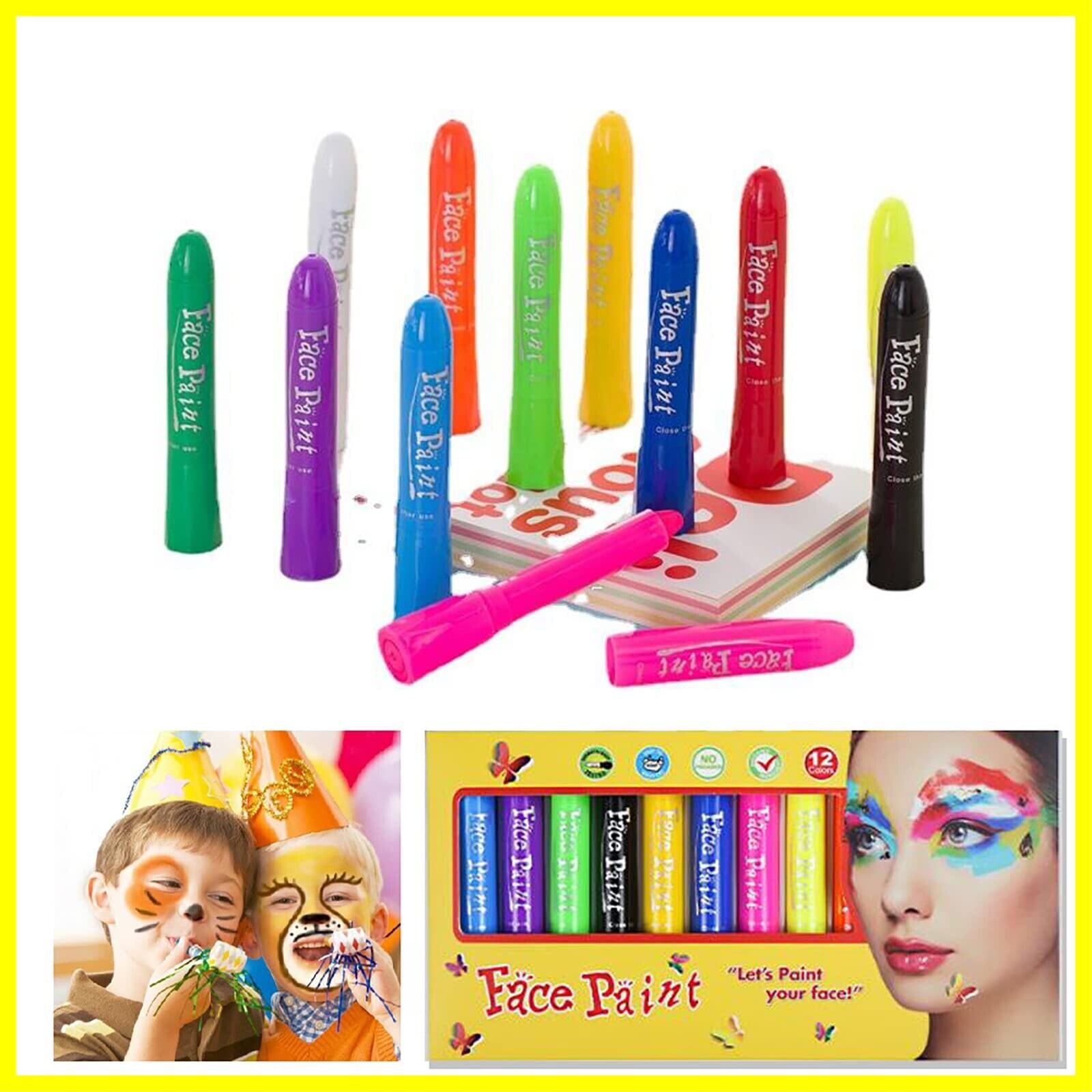 フェイスペイント 12色セット クリスマス ハロウィン コスプレ 小道具 安全 無毒 クレヨン 顔ペン ボディペイント 簡単水洗 祭り スポーツ応援に最適 (A)