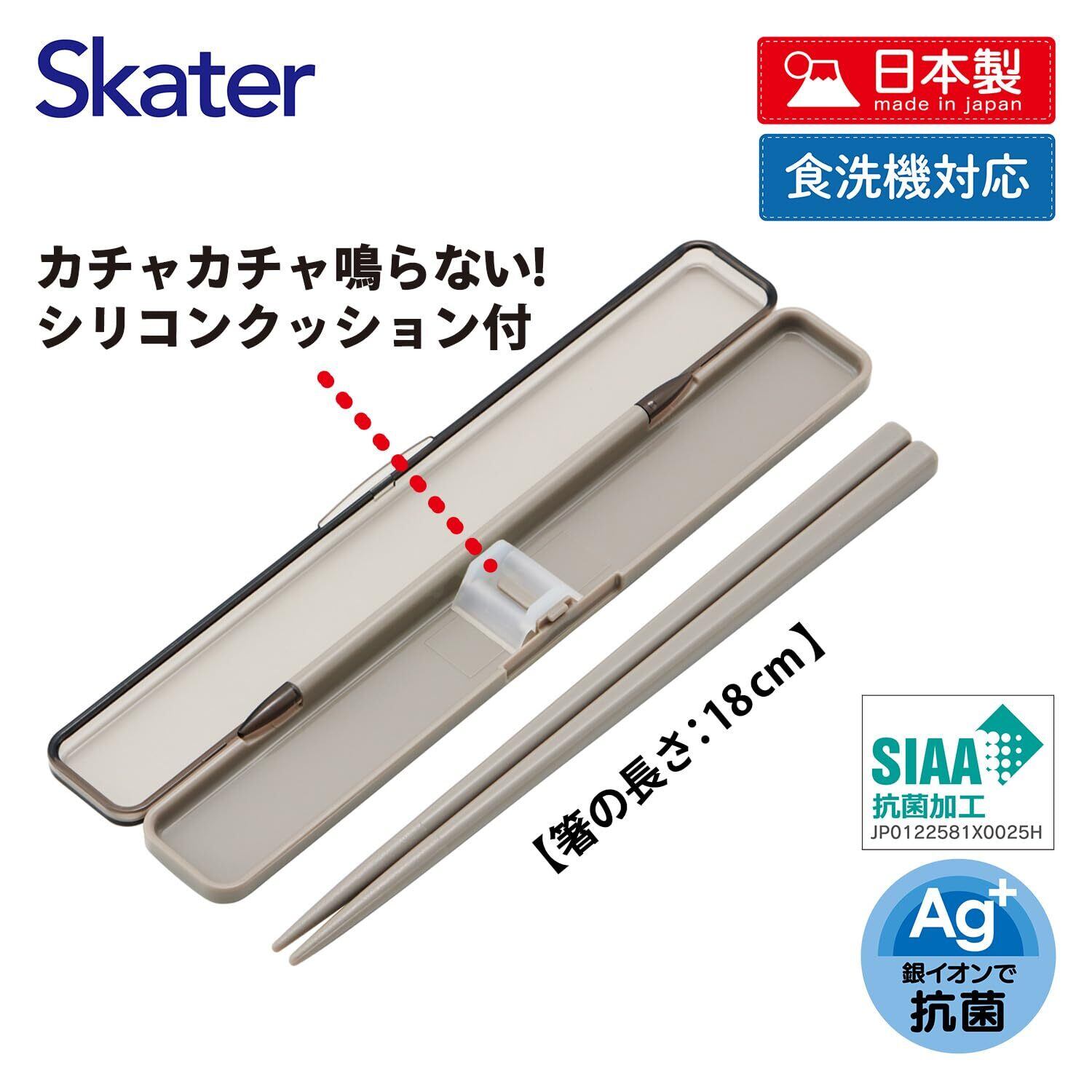 スケーター(Skater) 箸 箸箱 セット モーブグレー 18cm 抗菌 大人用 日本製 ABC3AG-A