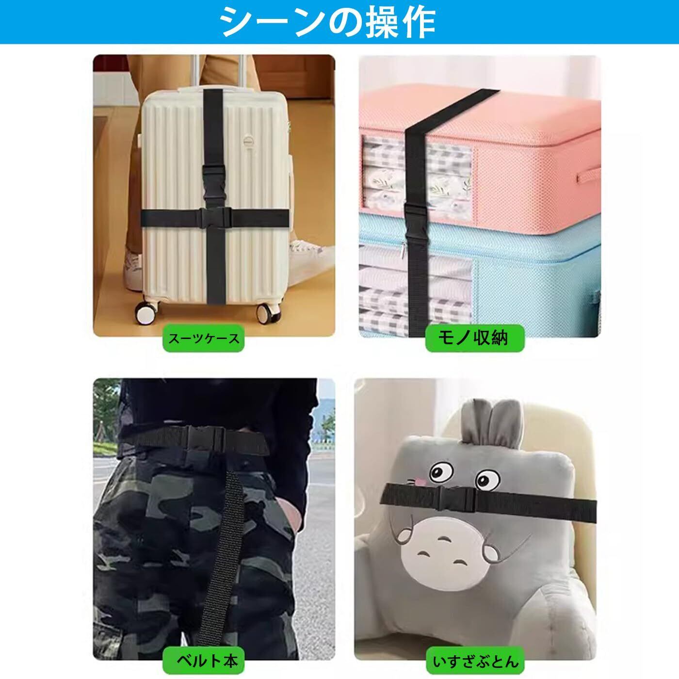 3.調節可能な設計、柔軟に適用する;ベルトの長さは自由に調整でき、さまざまなサイズのスーツケースや小包に適しています。水平方向でも垂直方向でも、荷物がゆるまないように簡単に固定できます。
