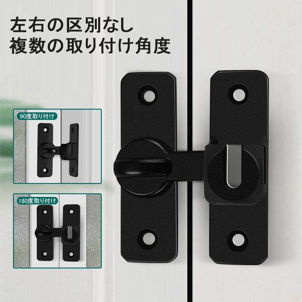 UrbanPulse ドアロック 90度/180度 補助錠 室内ドア 鍵 ロック部屋鍵後付けドアロック 後付け 亜鉛合金 防錆 耐久性 部屋 玄関 室内 ドア留め金ロック 内鍵 耐震ラッ 防犯リビング 寝室 家庭用 業務用 いたずら防止 対策取り付け簡単 (ブラック)