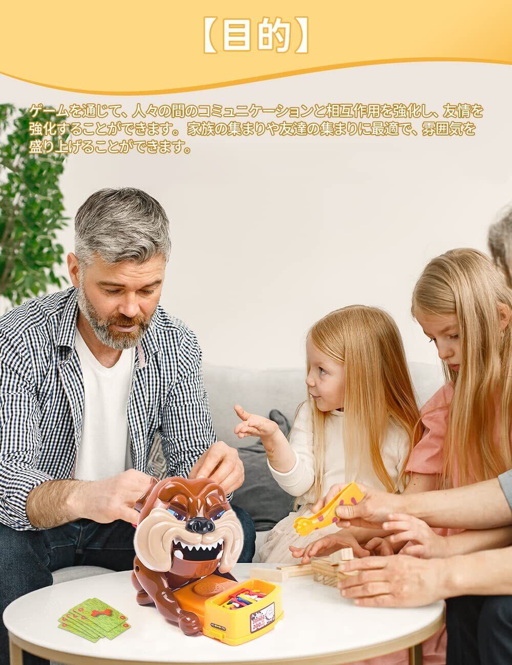 【楽しさと興奮】怒ったブルドッグは目を覚ますと自然に跳ね上がり、激しく吠えます。カードを混ぜて犬の前のボウルに入れ、プレイヤーはカードを1枚選び、クランプを使って取り出します。犬のボウルからの対応する骨は、犬の吠え声も聞くことができ、非常にエキサイティングで面白いです。