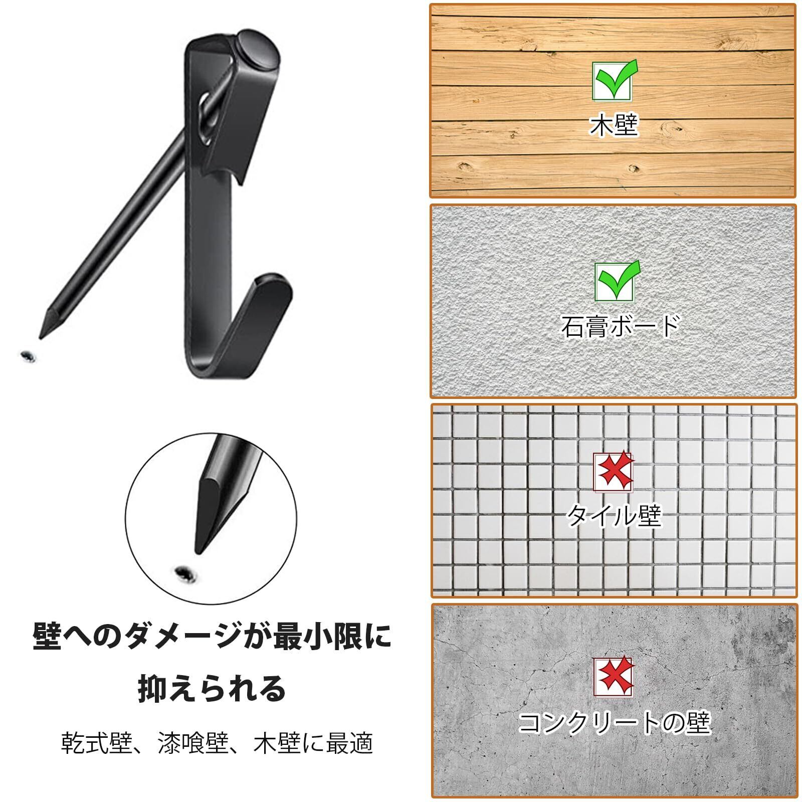 3. 幅広い用途&適用壁:画鋲フックの用途は非常に広く、いろいろなものをかけるのに便利です。たとえば、写真立て、カレンダー、鍵、ハサミ、台所道具などです。自宅やオフィス、キッチン、玄関、学習室などに幅広く活用できます。石膏ボード、ベニヤ板、コルクボードなどに最適な壁掛けフック。注意:セメントやセラミックの壁には使用できません。