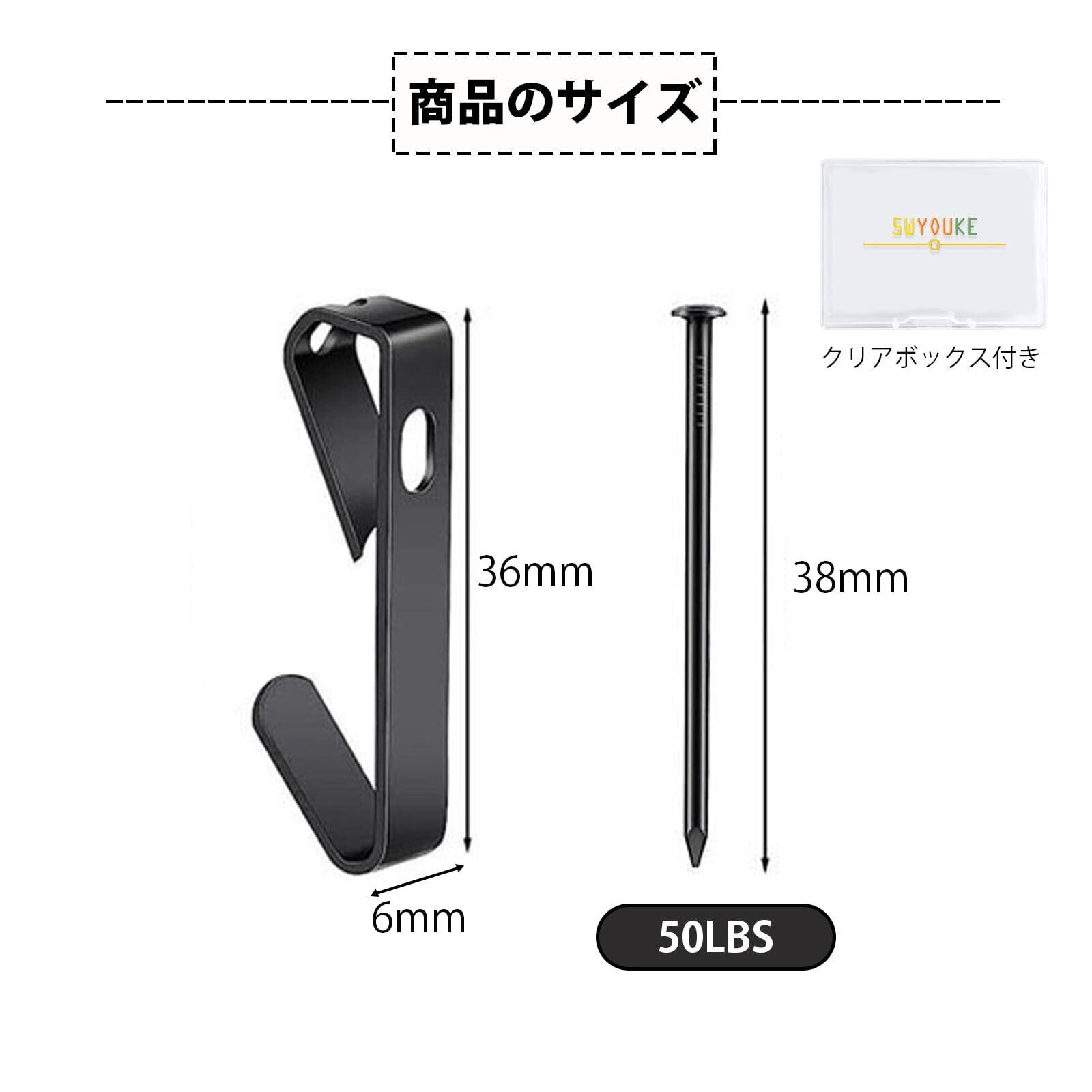 5WYOUKE【20個入】 画鋲 フック おしゃれ ピンフック 耐荷重約22.5kg 石膏ボード・ベニヤ・木用フック 目立たない 跡が残らない 釘フック 壁 傷つけない 黒 金属 錆びない 額縁/時計/絵画/クリスマス 飾り用/カレンダー/鍵/写真/自宅/オフィス/キッチン/学習室/浴室用など