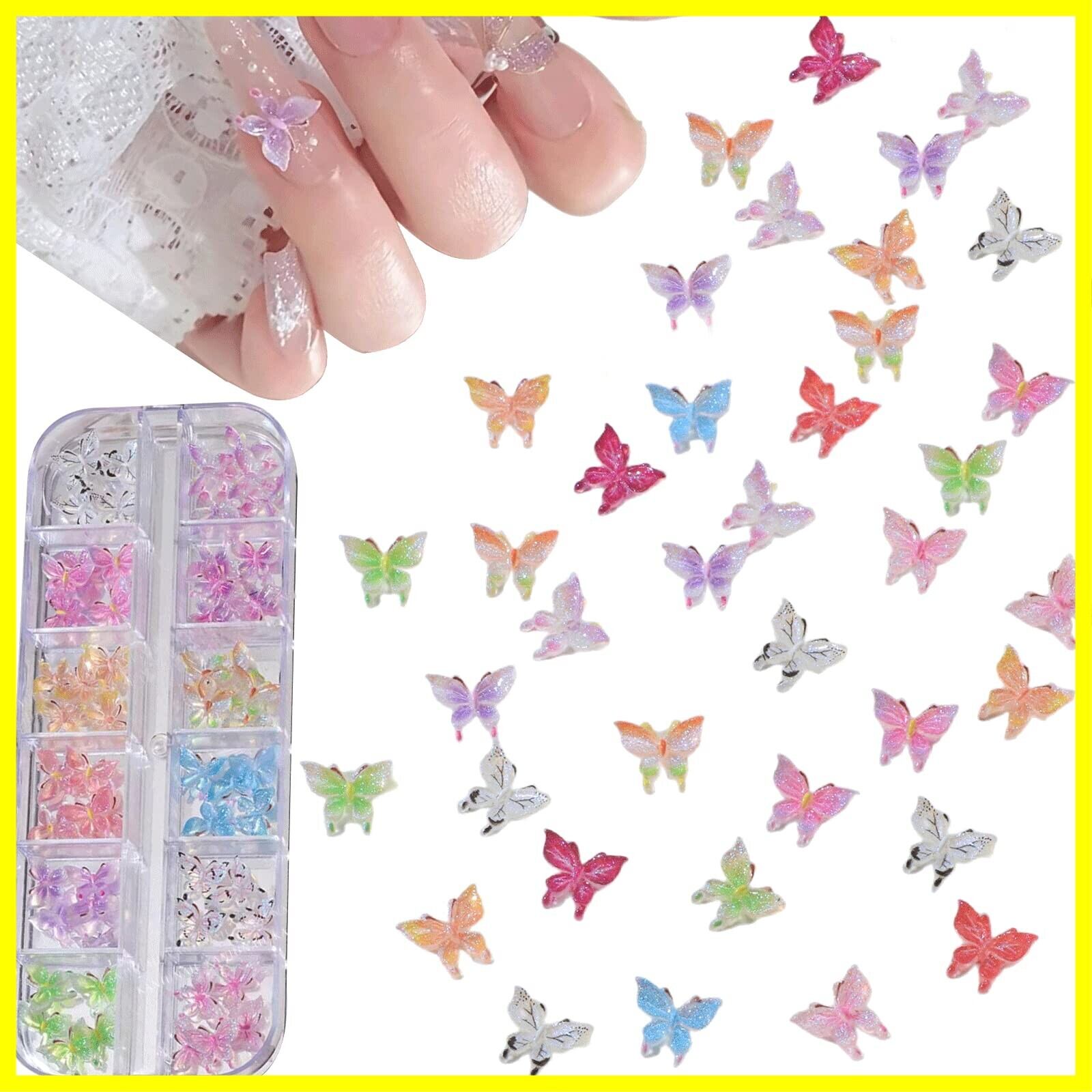 【蝶々ネイルパーツ】夜光の効果がある蝶ネイルパーツです。蝶パーツはカラフルーでおしゃれです。ネイルのワンポイントにぴったりの可愛いパーツになっております。