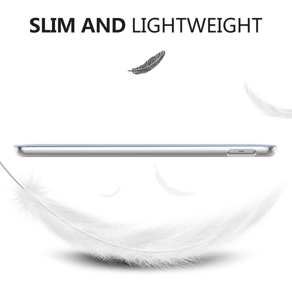[三つ折りスタンド]: 表面カバーは二つの溝デザインされて、溝を折るとスタンドになれます。二つの置く角度によって両手解放で動画鑑賞を楽々に楽しめ、またはタイピング角度にも変えて、仕事やゲームなどもっと快適に進められます。