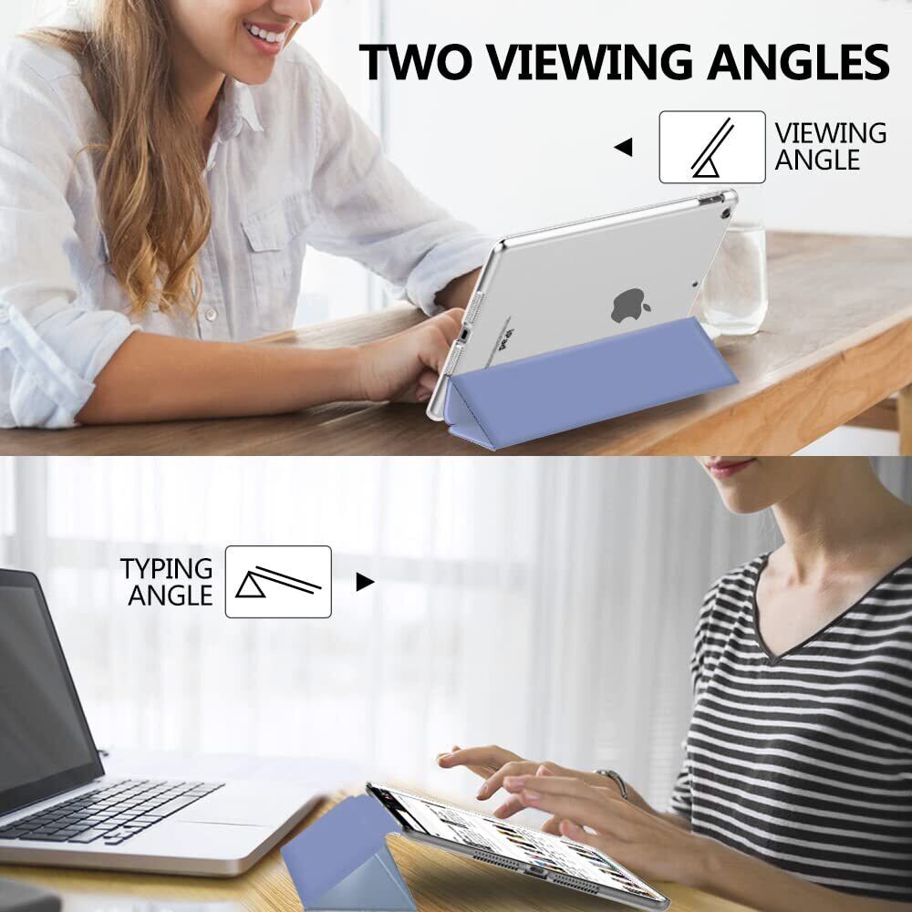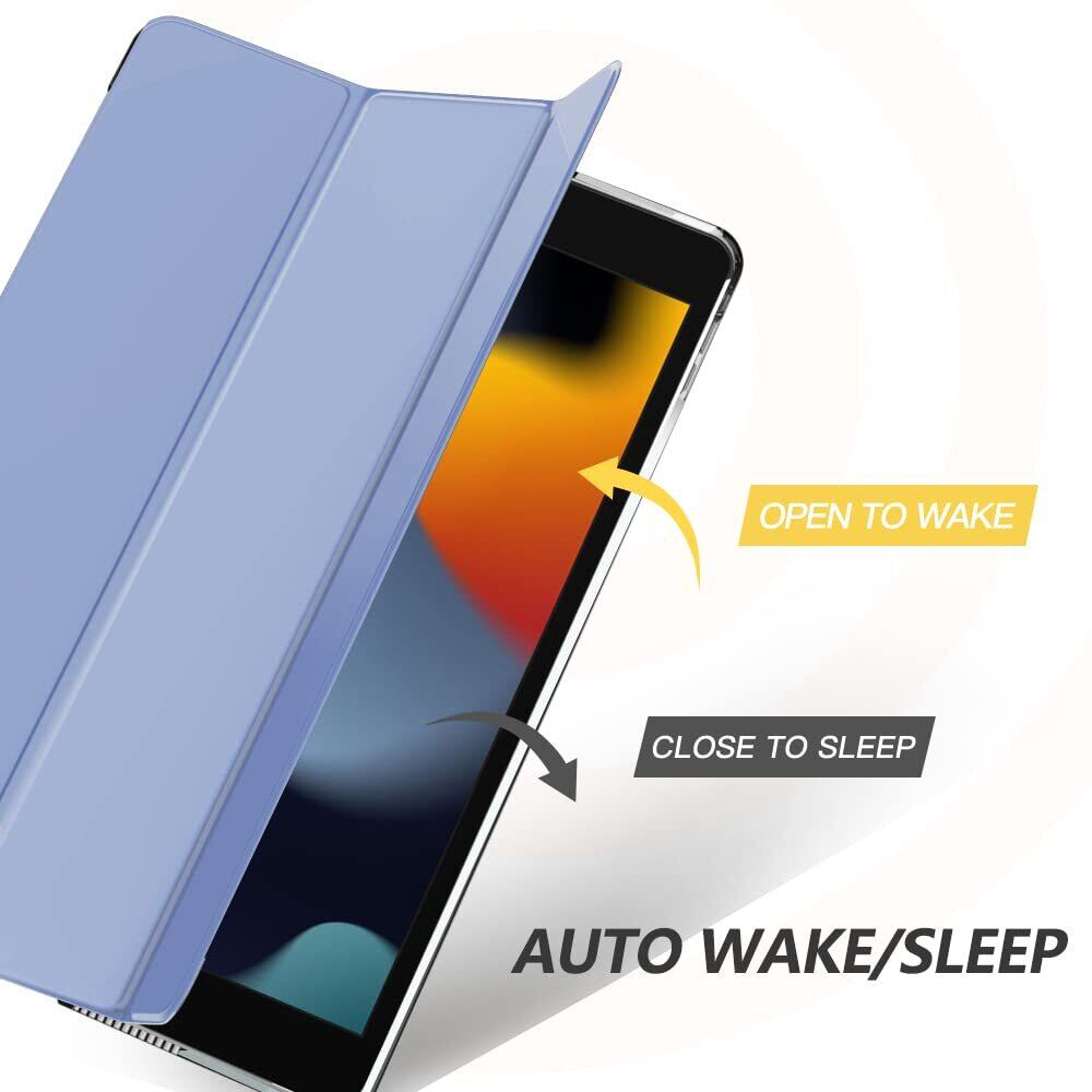 iPad 9 ケース 2021 MoKo iPad 10.2 ケース 第9/8/7世代(2021/2020/2019) 半透明 オートスリープ機能 薄型 スタンド 三つ折り 高級PUレザー 裏地マイクロファイバー 傷防止 スマートケース Lavender