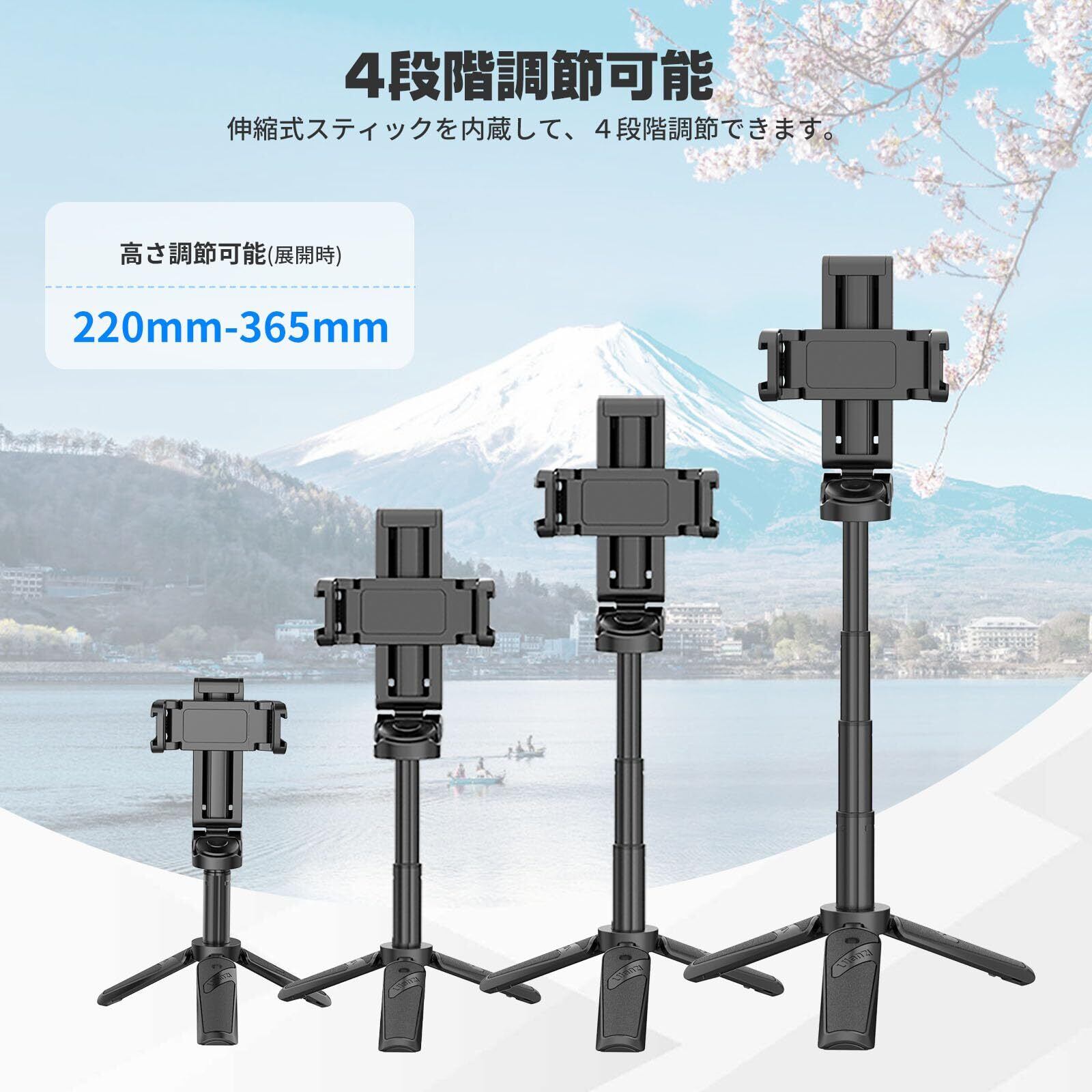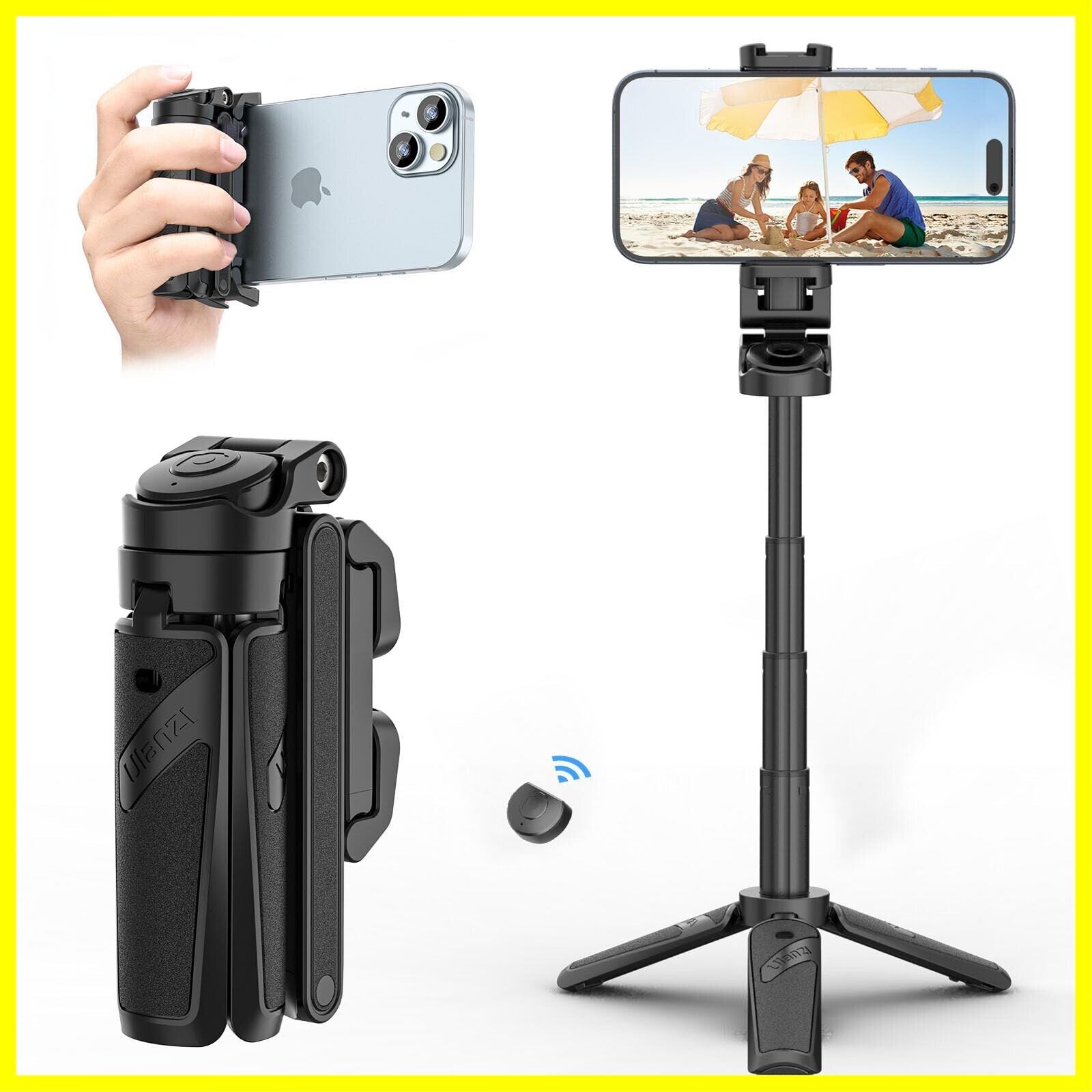Ulanzi JJ02 自撮り棒 多機能スマホグリップ 三脚【2024新開発 ・超ミニ】4段階伸縮 折りたたみ式 スマートフォンホルダー スマホ 三脚 リモコン付き コールドシュー付き コンパクト iPhone Androidに対応 写真/旅行/動画を撮る/セルフィー/生放送に最適