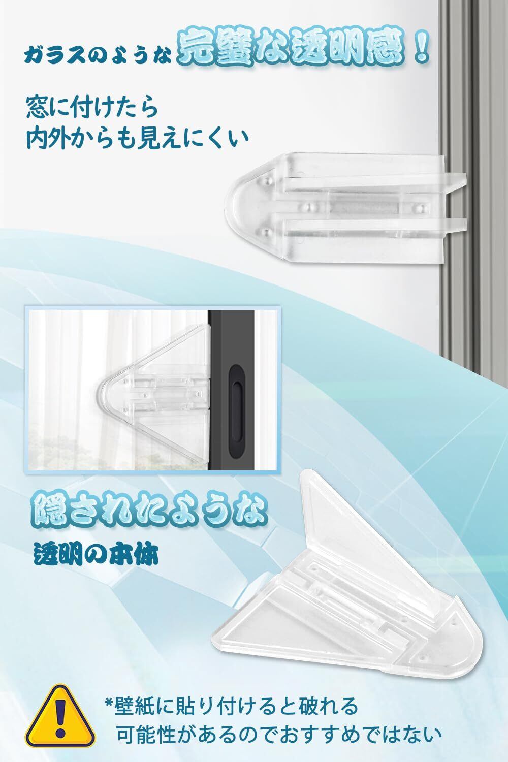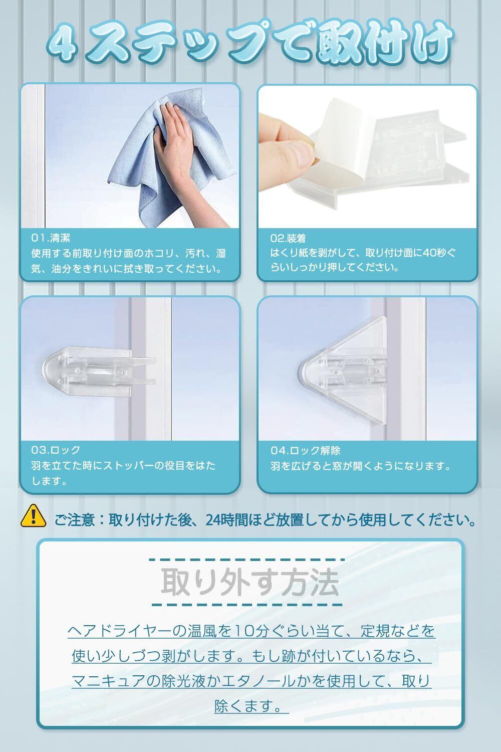【簡単ロック式】戸を大きく開ける時は、羽を広げてください。羽を閉じた時のみストッパーの役目をはたします。窓一つで安全ロック2~3個を設置するともっと堅固になり、透明のタイプなので目たちないです。