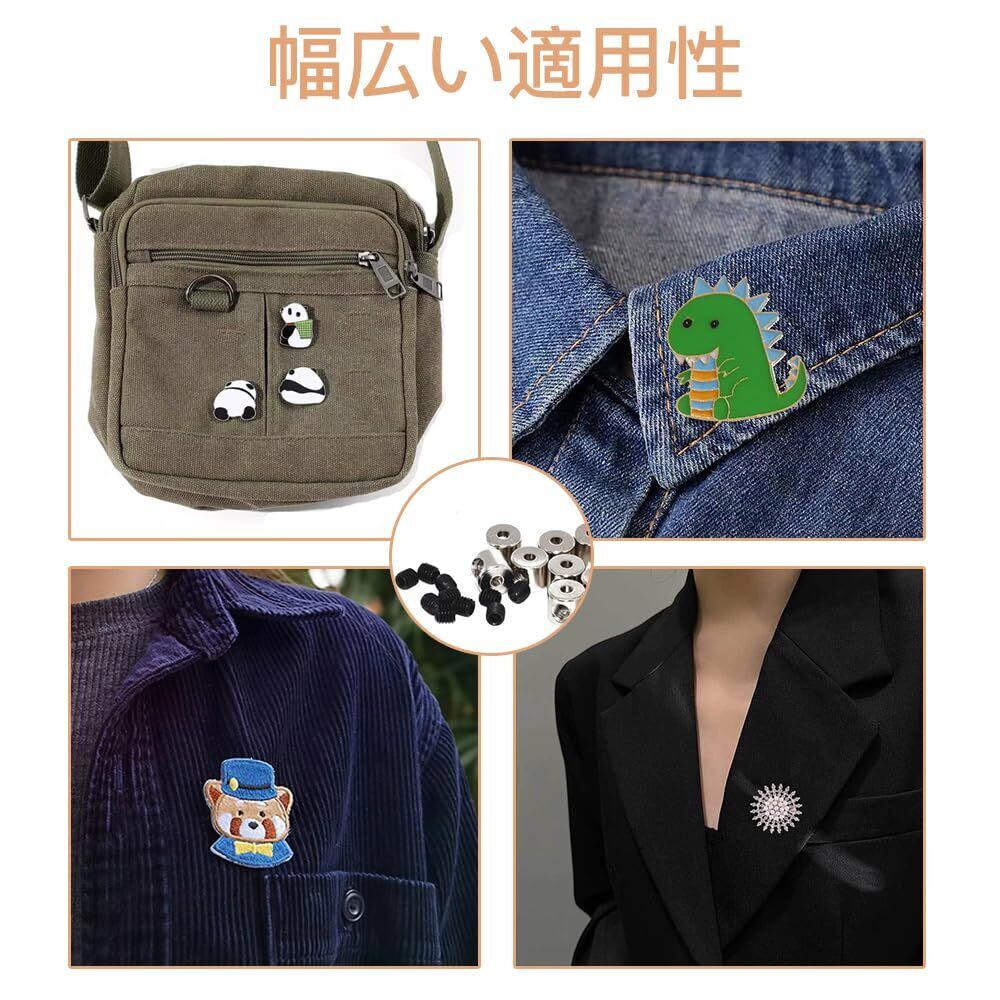 【用途】ネジ留め金具を使用して、服、荷物、デニムパンツなどにバッジを取り付けることができます。ジュエリー、バッジ、帽子、ネクタイ、胸花、バックパック、タグ、DIYパーツ、おもちゃなどに適しています。