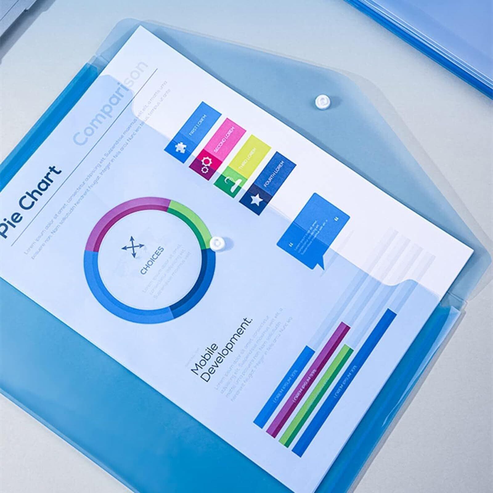 【製品仕様】】A 4サイズ:約315*230 mm、それぞれブルー、イエロー、レッド、 グーリン、クリアの5色、各5枚、計12枚。とてもシンプルでスタイリッシュなエンベロープ型のファイルバッグです。