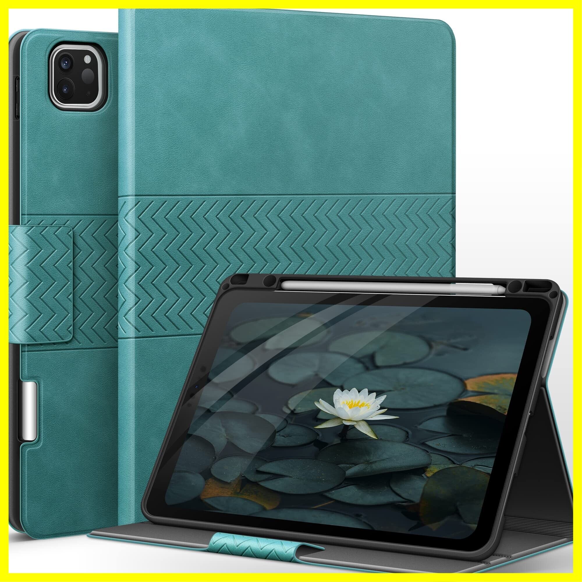 auaua iPad Pro 12.9インチ ケース 2022/2021/2020/2018 ペン収納 PUレザー 手帳型 ひび割れ防止 耐衝撃 オートスリープ&スタンド機能付き 全面保護 iPad Pro 12.9 第6/5/4/3世代兼用 (グリーン)