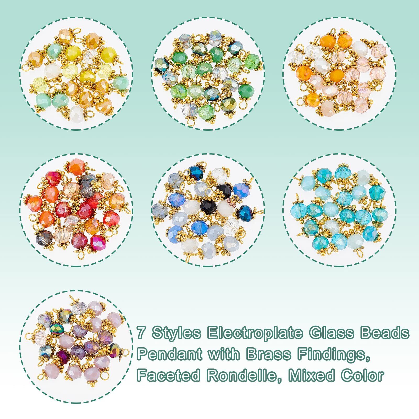 セット内容:電気メッキ加工を施したファセットガラスペンダント(7色)140個入り 各色20枚ずつ。 DIYジュエリーや、友人や家族へのプレゼントに十分な量です。 ガラスビーズは長さ約12mm、直径約5.5mmです。 穴の大きさは約1.4mmです。