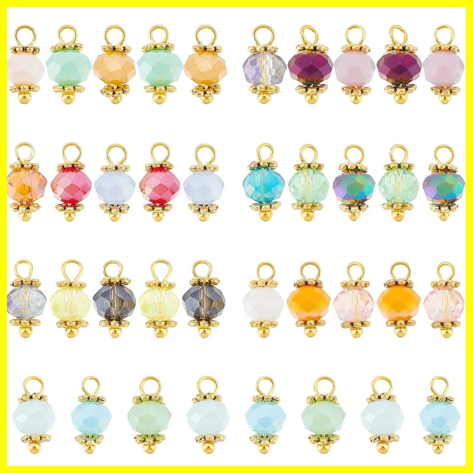 PandaHall 140個セット ガラスビーズ チャーム コネクタパーツ 7色 カラフル 切り面 カットビーズ ピアス イヤリングパーツ ジュエリー作り ネックレス ブレスレット アクセサリーパーツ 手芸 DIY用品 12×5.5mm