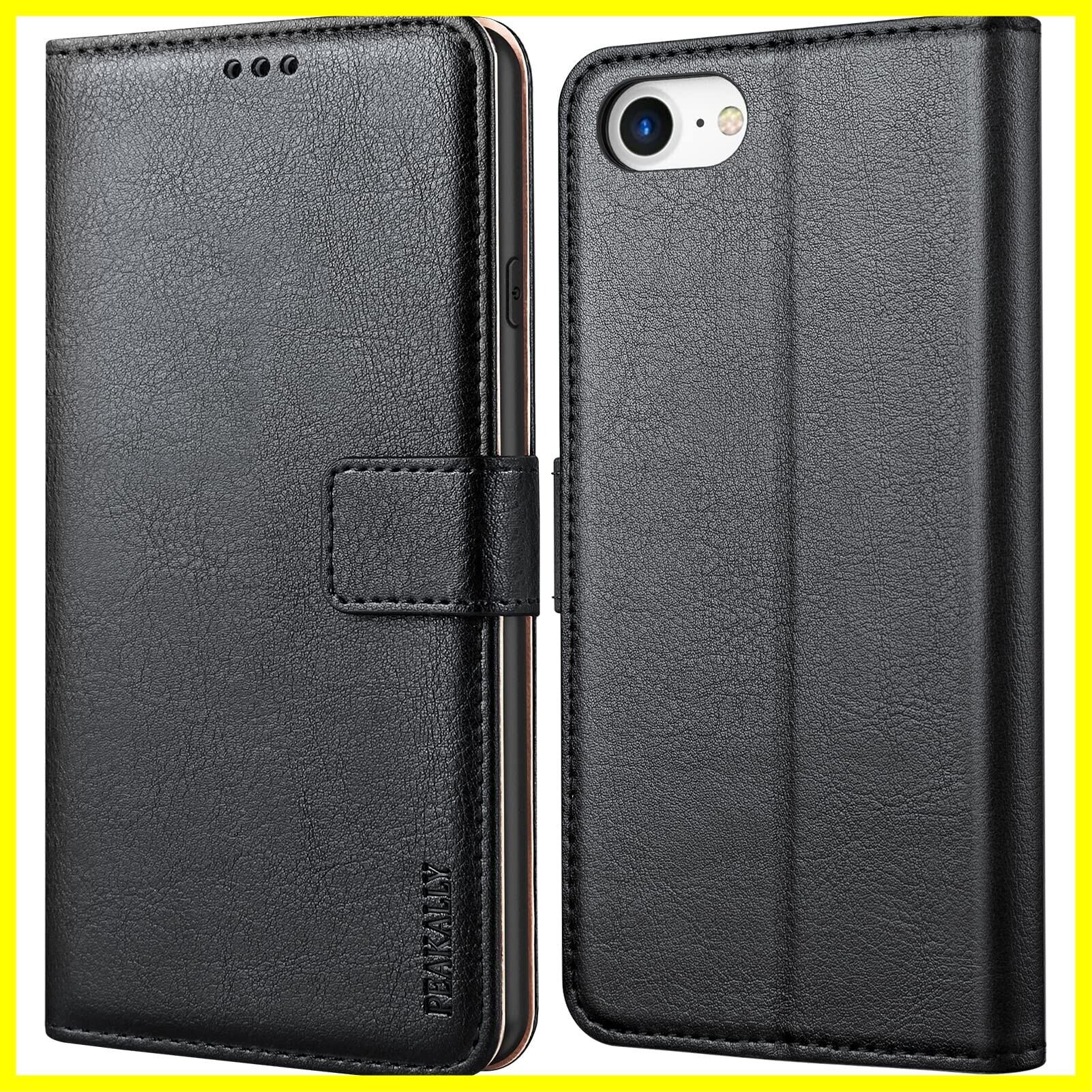 Peakally iPhone SE ケース 手帳型 iPhone se3/ iPhone se2/iPhone8/iPhone7/iPhone6s/6 手帳型スマホケース カード収納 財布型ケース 高級PUレザー マグネット式 スタンド機能 360度保護 耐衝撃 (ブラック)