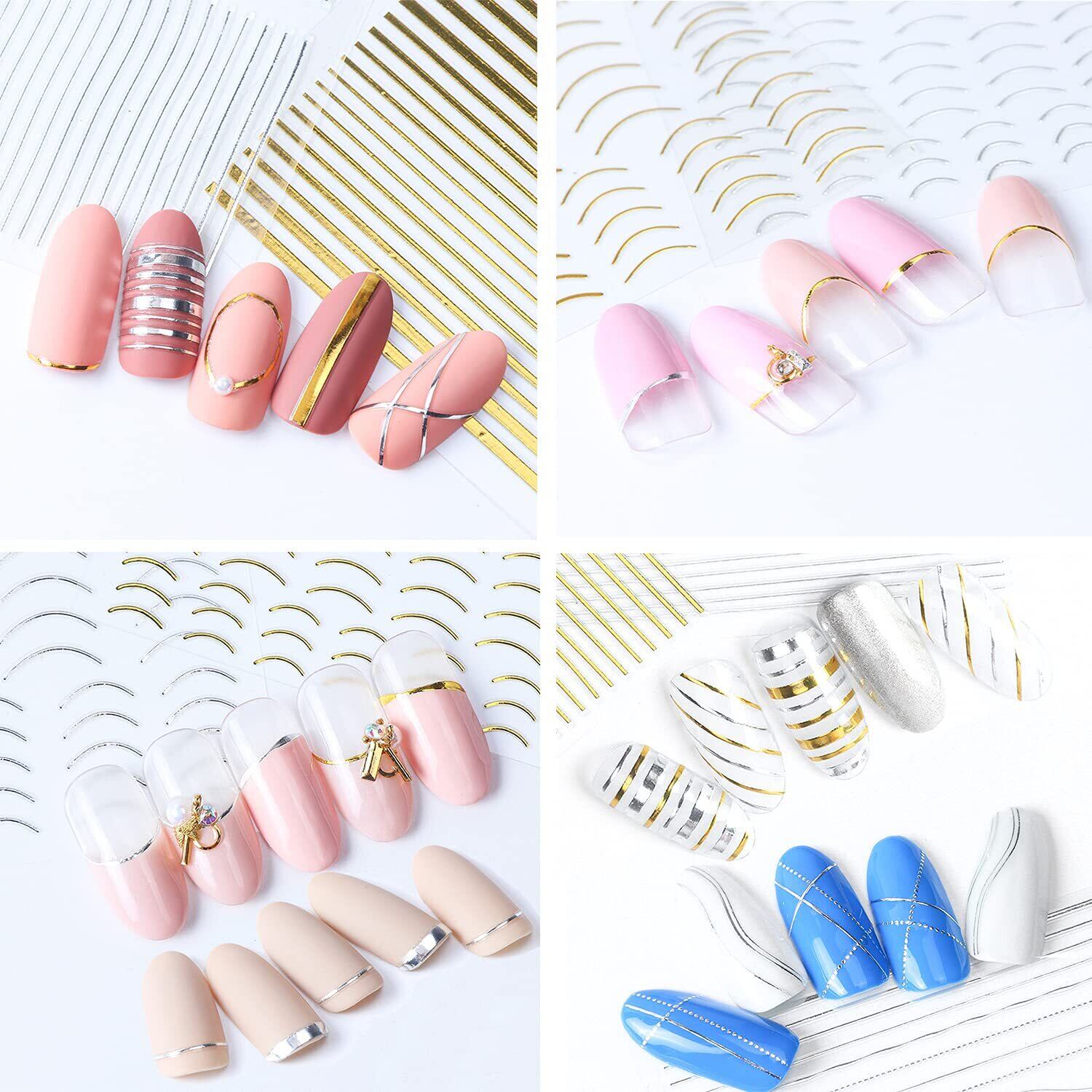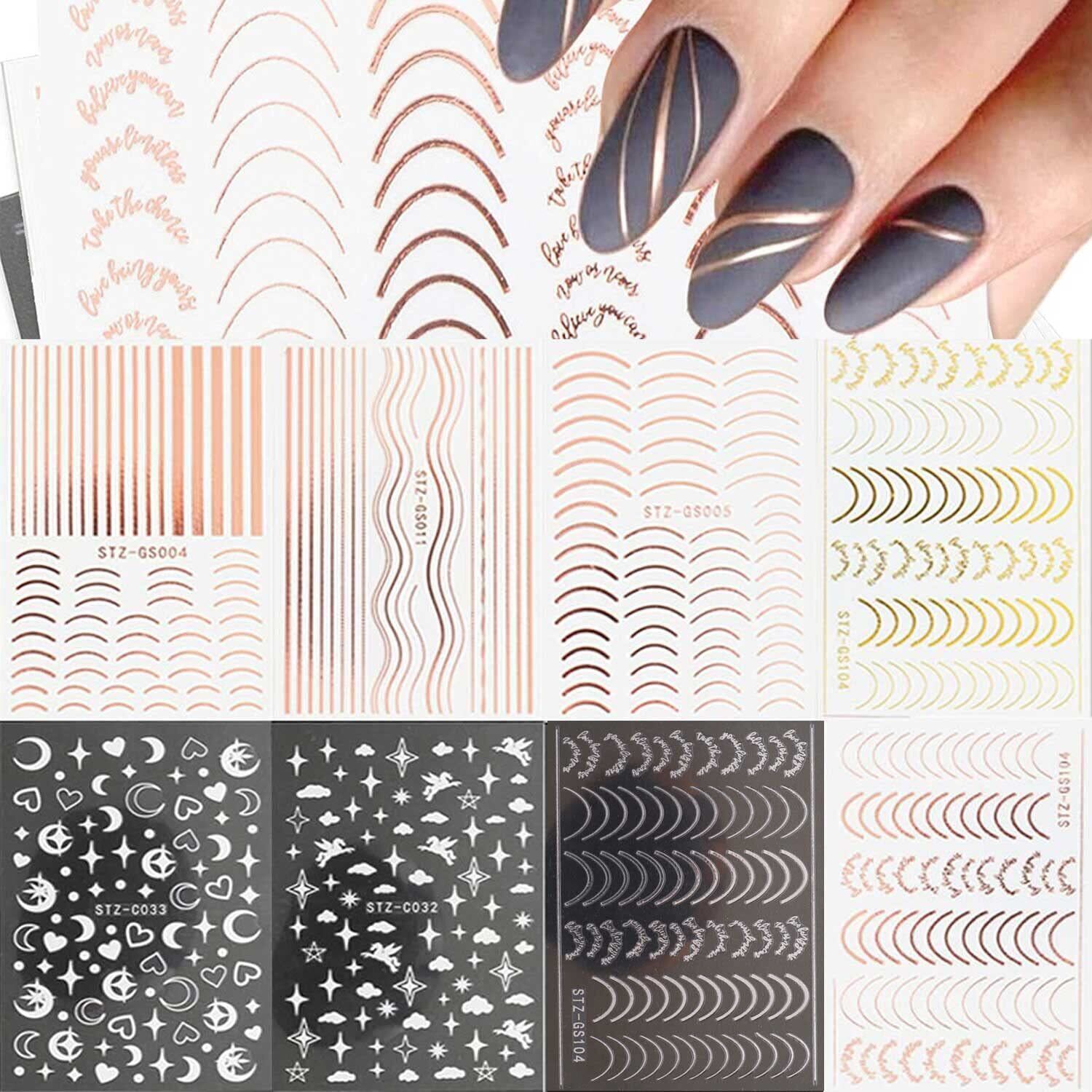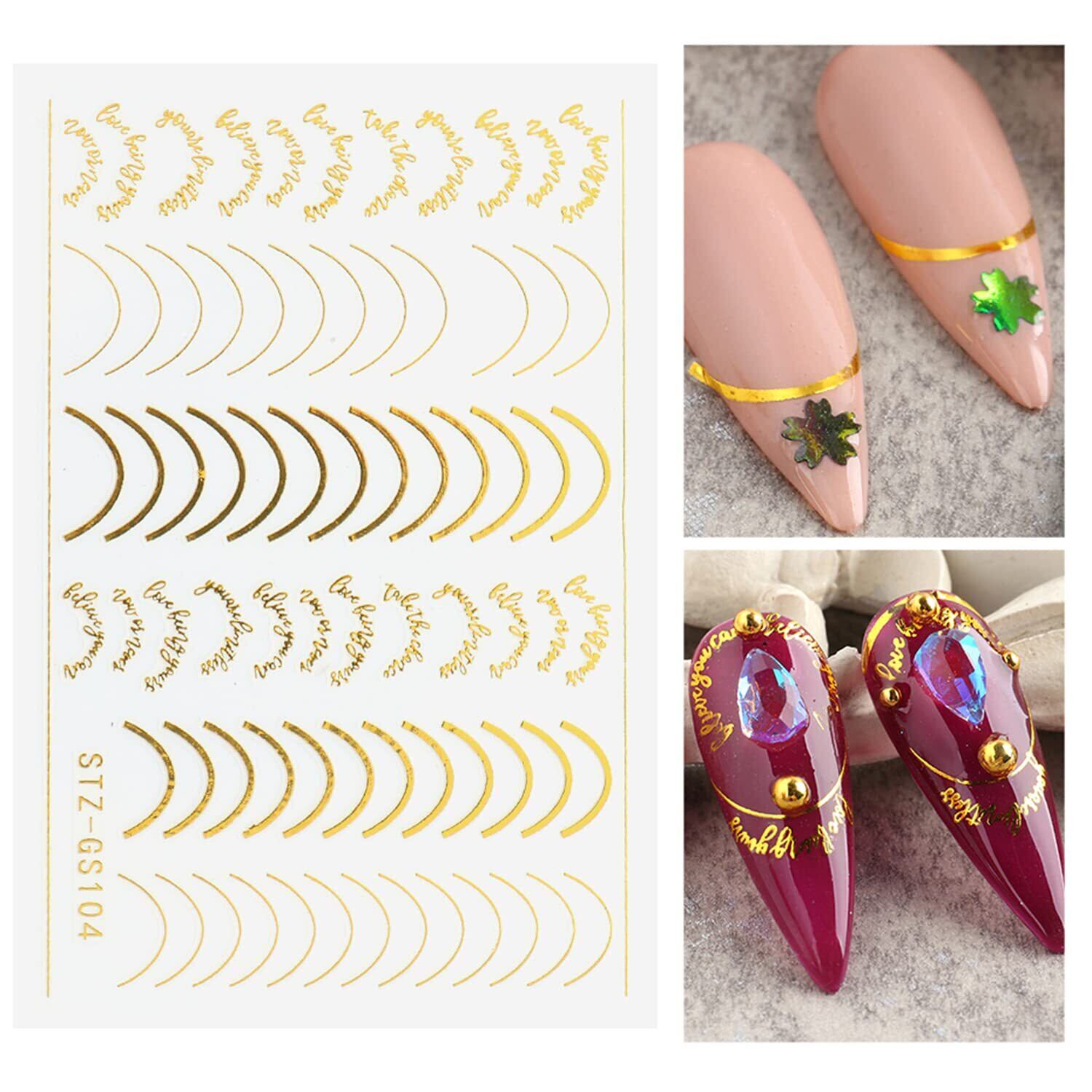 LANODO ネイルシール 8枚 フレンチシール ゴールド シルバー ライン カーブ ネイルアート 綺麗です ネイルステッカー DIY