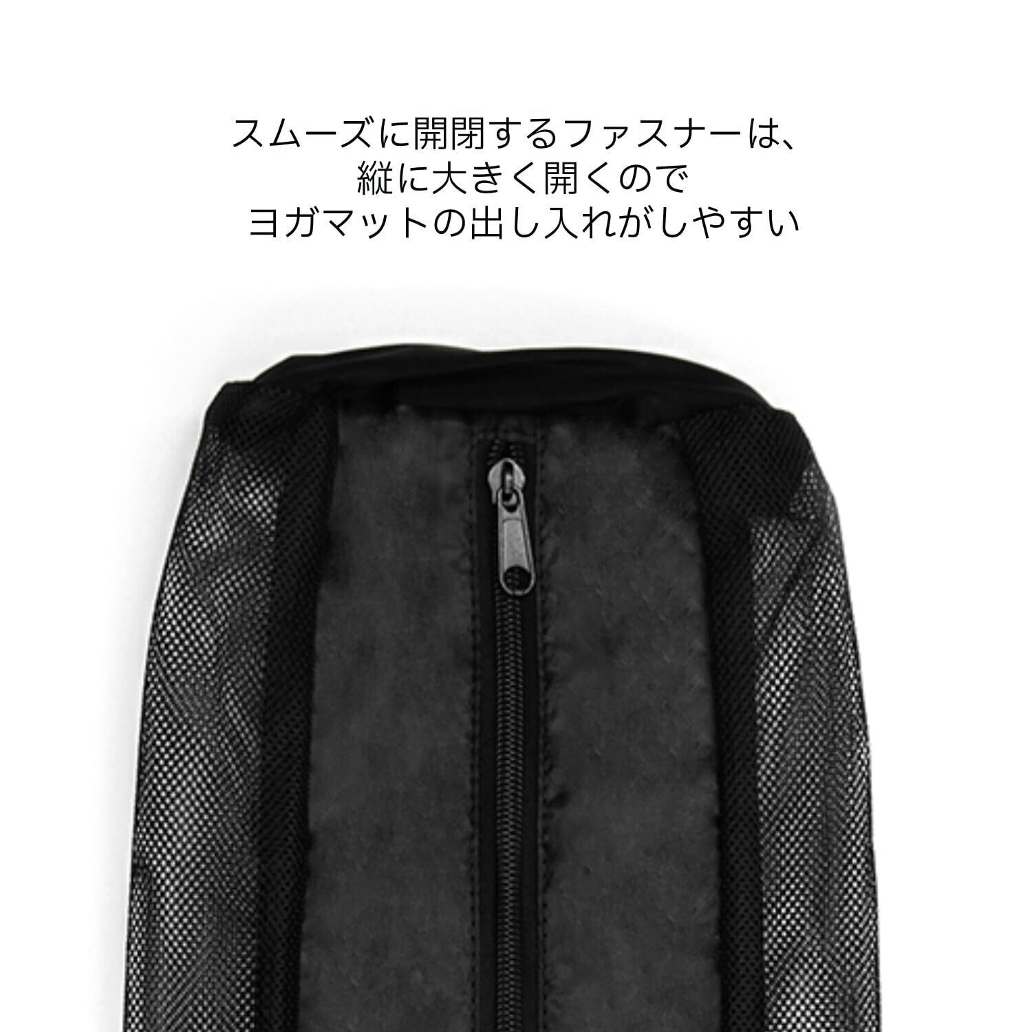 縦開きファスナーでヨガマットの出し入れが簡単!
