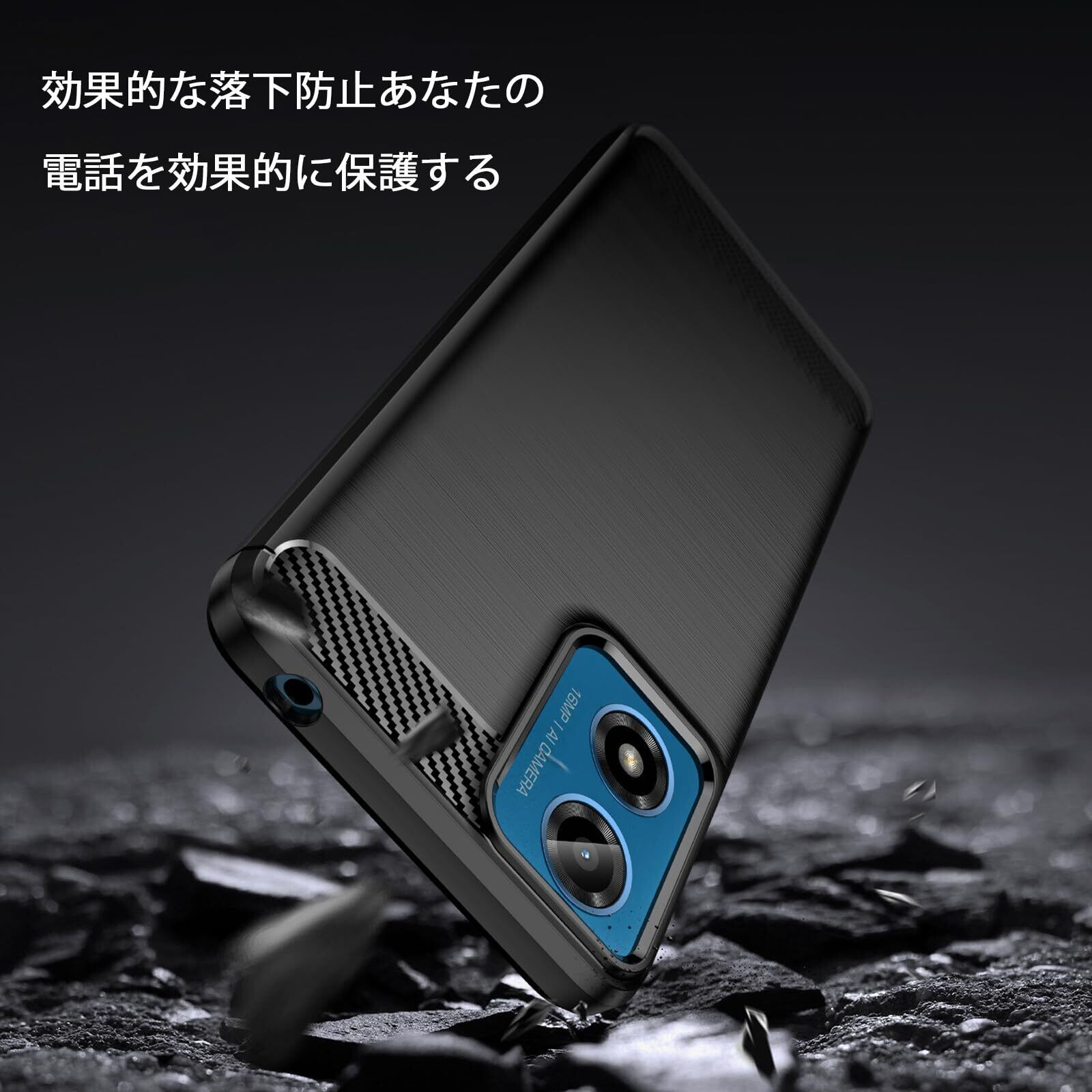 Moto G24 ケース 炭素繊維 カバー 保護性能良い ブラシ柄 TPU保護 ソフト シリコン おしゃれ 薄型 衝撃吸収 柔らかい手触り 全面保護 モトローラ Moto G24 4G 対応 ケース (ブラック)