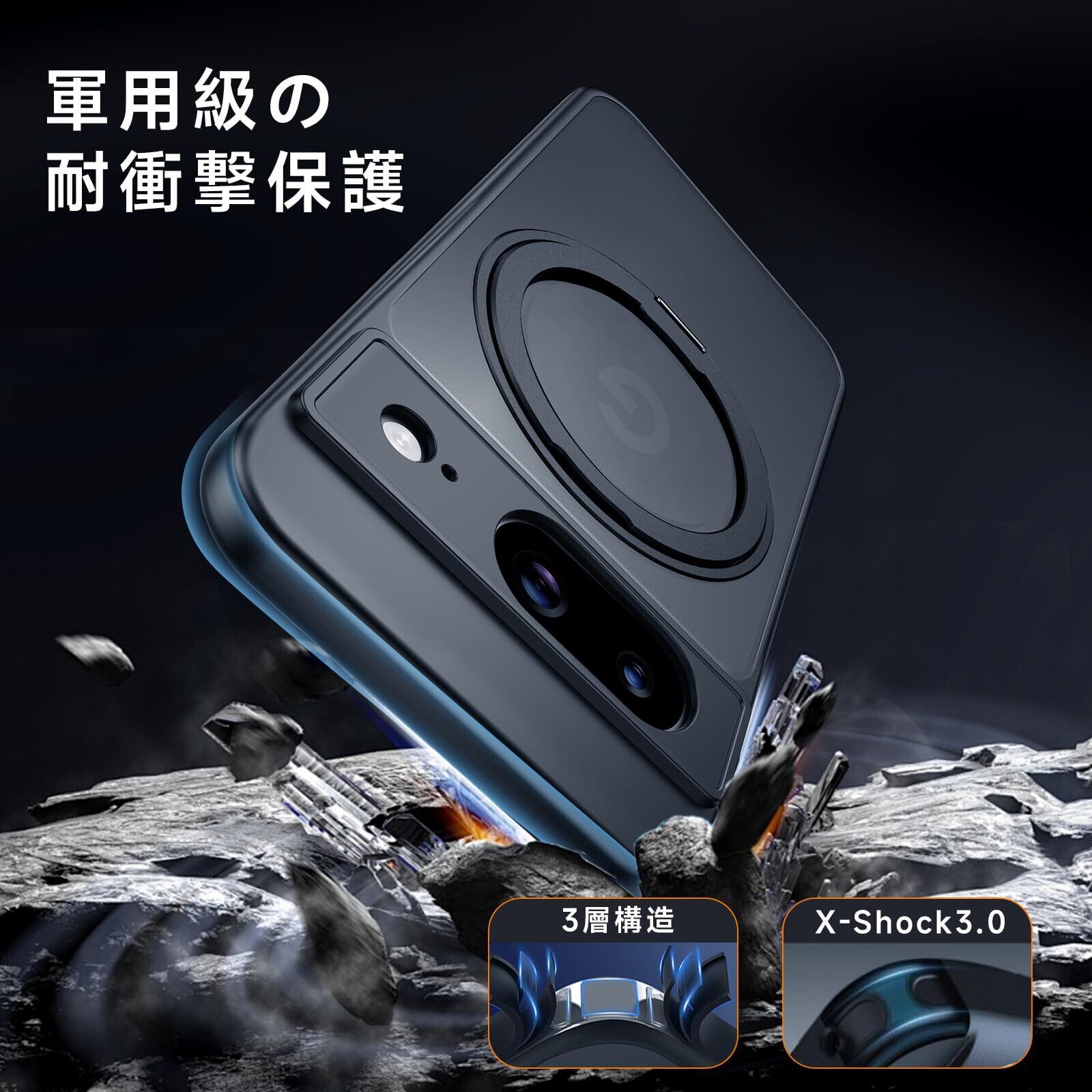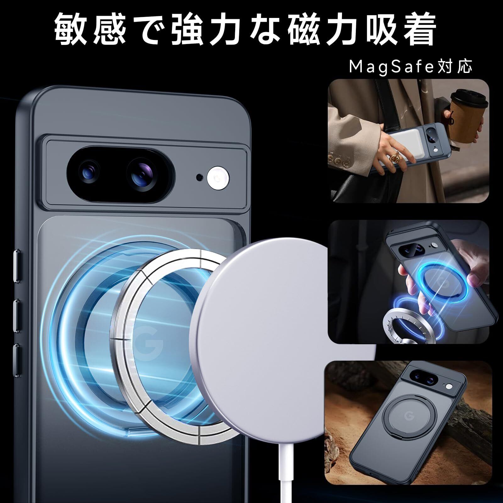 【米軍MIL規格・Magsafe対応】Google Pixel 8 用 ケース MagSafe対応 リング360°回転スタンド機能 縦横両対応 半透明 黄ばみ防止 ワイヤレス充電 ピクセル8 スマホケース レンズ保護 耐衝撃 携帯カバー グーグルピクセル8 カバー 6.2 インチ マグネット搭載 車載ホルダー マグセーフ対応 おしゃれ (ブラック)