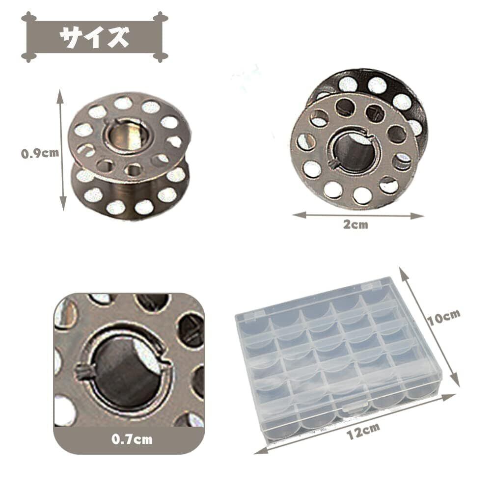製品内容:ボビン ボビンケース 25個入り,収納ボックス付き 。