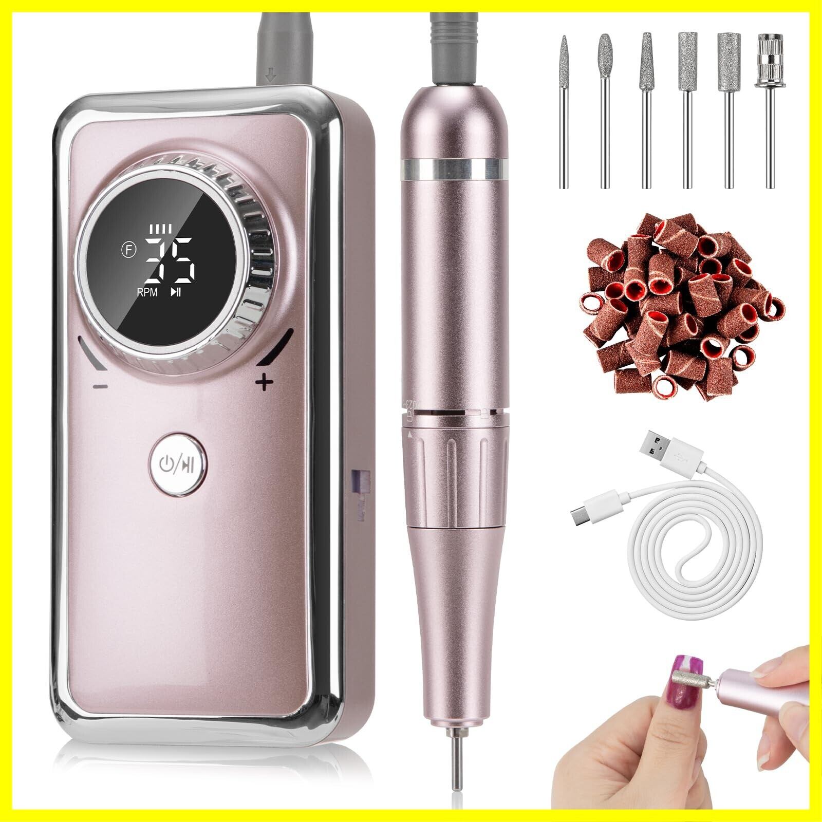 Madenia 充電式ネイルマシン 電動ネイルマシン プロ用 ビット付け ネイルマシーン アクリルネイル 35000RPM 高速回転 正逆回転 無階段変速 一時止め プロネイルマシン ネイルケア 初心者可 ネイルサロン 自宅用 ネイルビット&サンディングバンド付け ピンク