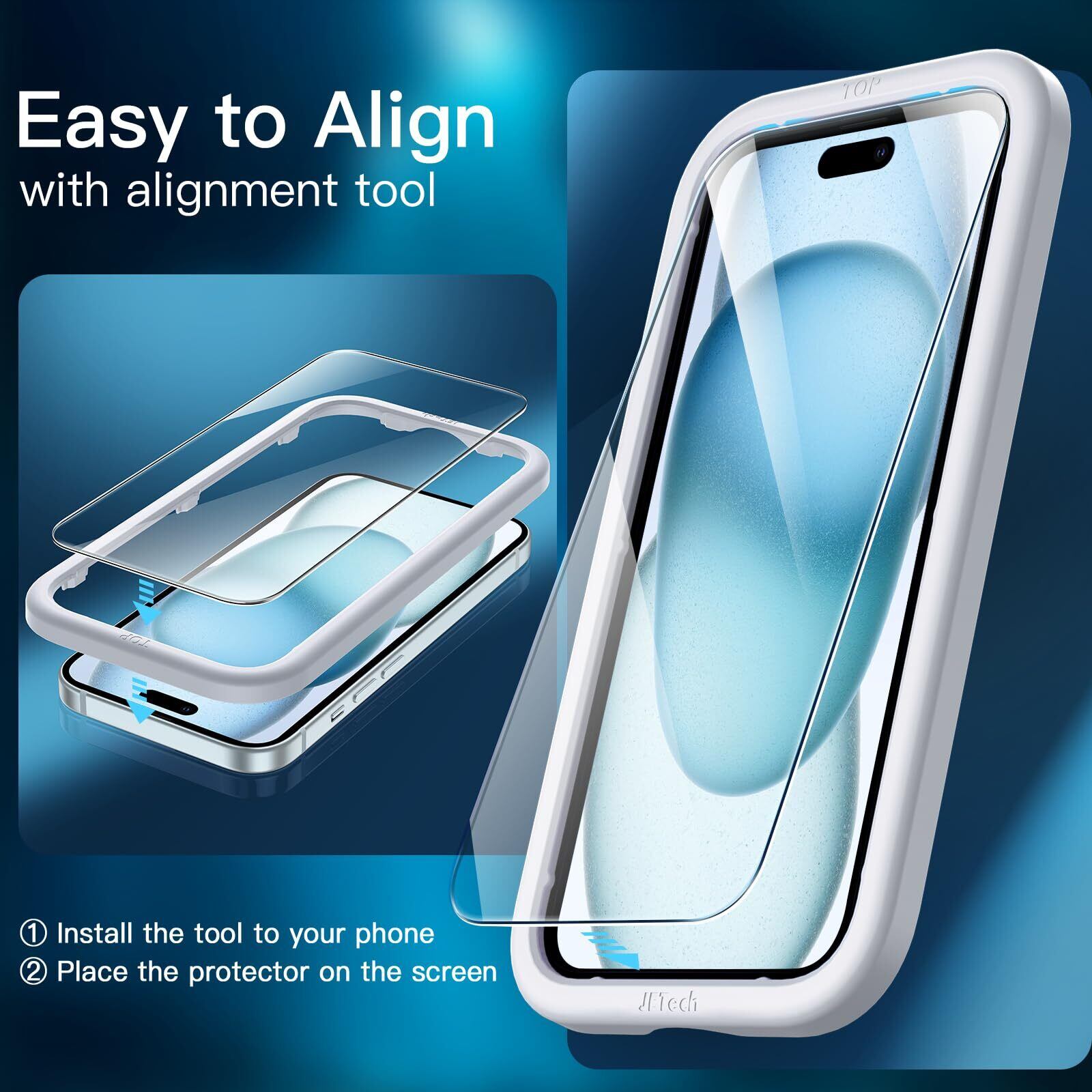 JETech 5 in 1 iPhone 15 6.1インチ用 マットケース 2枚強化ガラスフィルム+2枚カメラレンズフィルム付き 5枚セット 半透明背面 耐衝撃スマホカバー (ブルー)