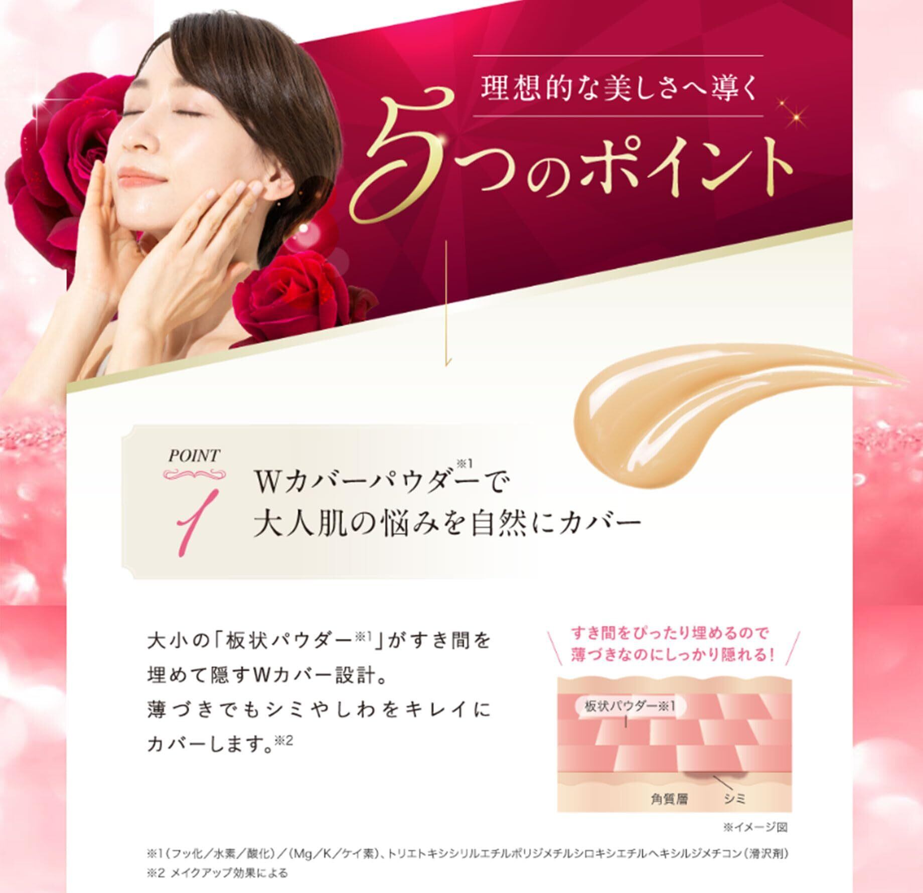 【使用方法】基礎化粧品でお肌を整えた後、コンパクトの中ふたを開け、付属のパフをファンデーションに軽く押しあてて調節しながら、適量をとります。ポンポンとお肌にのせながら、均一になじませます。