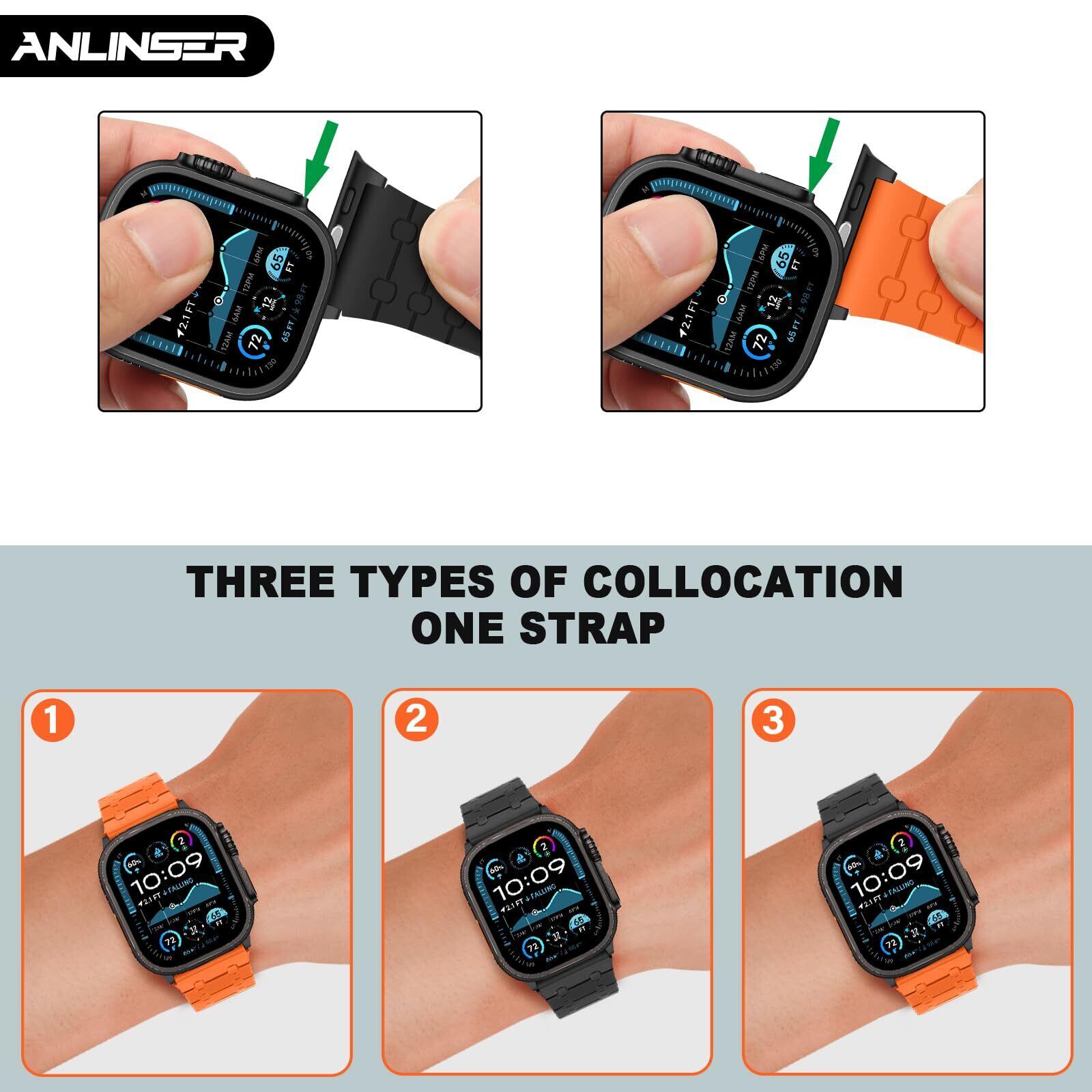 Anlinser コンパチブル アップルウォッチバンド Apple Watch バンド49mm 46mm 45mm 44mm 42mm、両面リバーシブルマグネットバンド iWatch Ultra 2 シリーズSE/10/9/8/7/6-1用(ブラック/オレンジ)