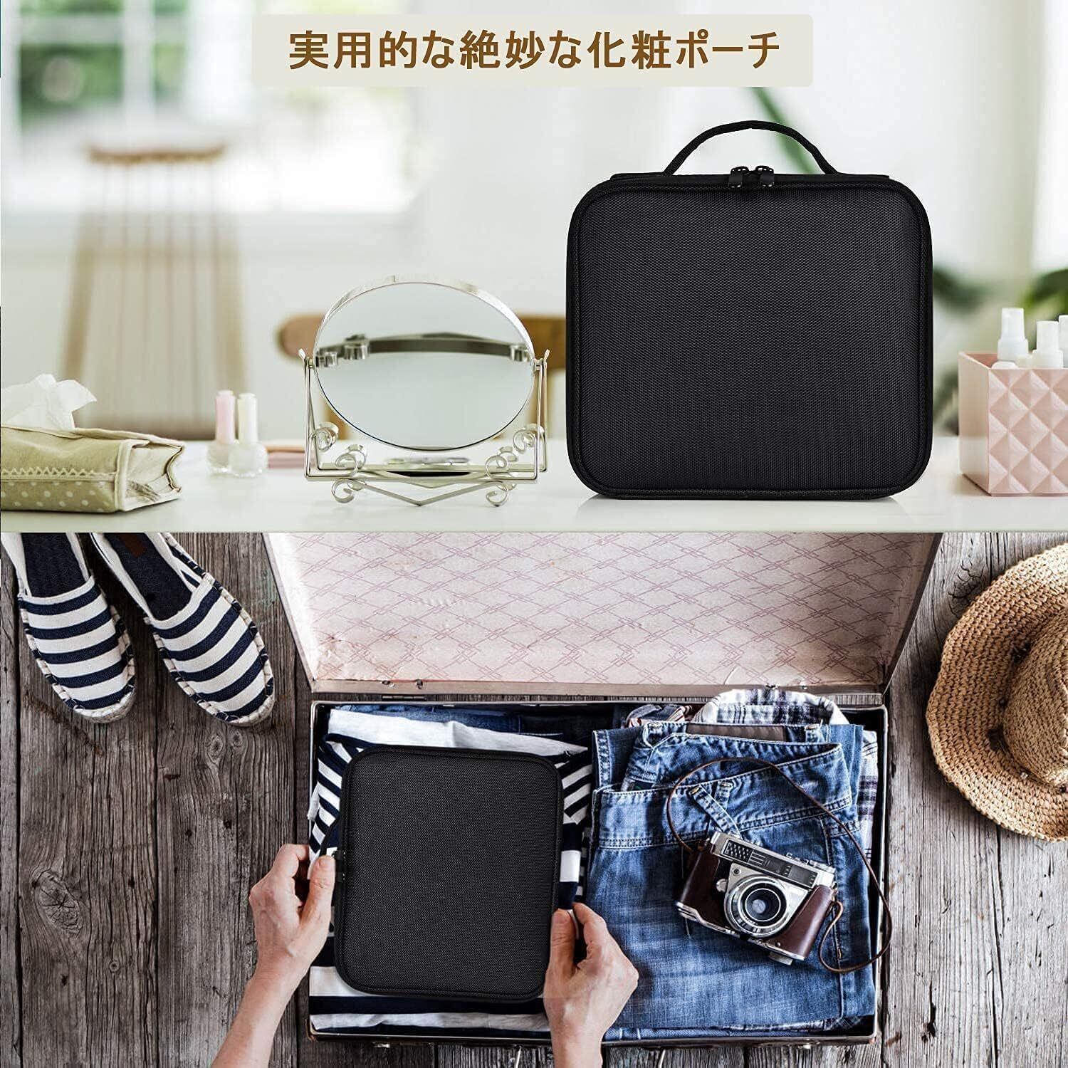 メイクボックス プロ用 コスメボックス メイクポーチ 機能的 大容量 化粧ポーチ コスメポーチ 持ち運び メイクぼっくす 化粧品 メイク 道具 収納ボックス メイクブラシバッグ 旅行 出張用 (黒)