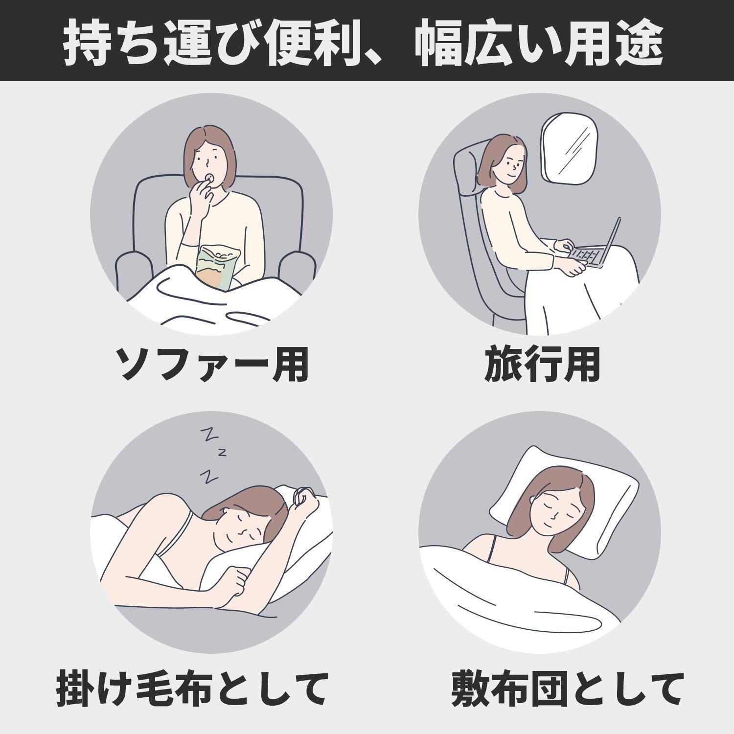【様々な用途毛布】様々なシーンに活躍!防寒具としても寝具としても使えるフランネルのブランケットは、ひとつ持っているととても便利なアイテムです。薄くて軽いから持ち運びやすくて、オフィスの引き出しの中や椅子の上などにコンパクトにたたんで置けます。オフィスで昼寝毛布として、冷え対策として、旅行やソファの上や車内用毛布、またキャンプ等のアウトドア活動においても活用いただけます。