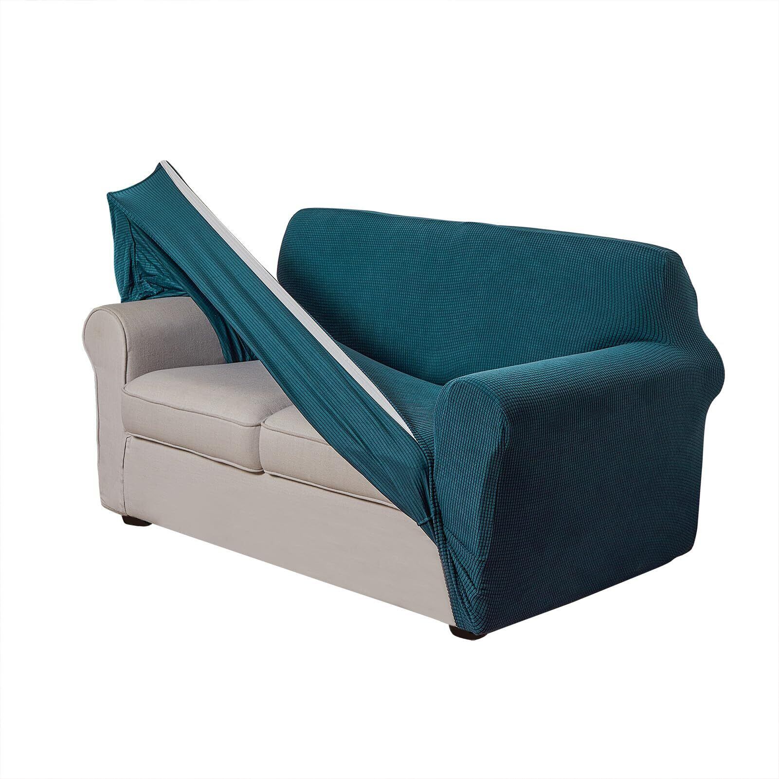 Topfinel ソファーカバー 3人掛け 肘付き 無地 北欧風 ストレッチ フィットタイプ 伸縮素材伸び良く 滑り止め 柔らかい 犬 猫 傷 防止 超便利 四季適用 (ピーコックブルー)