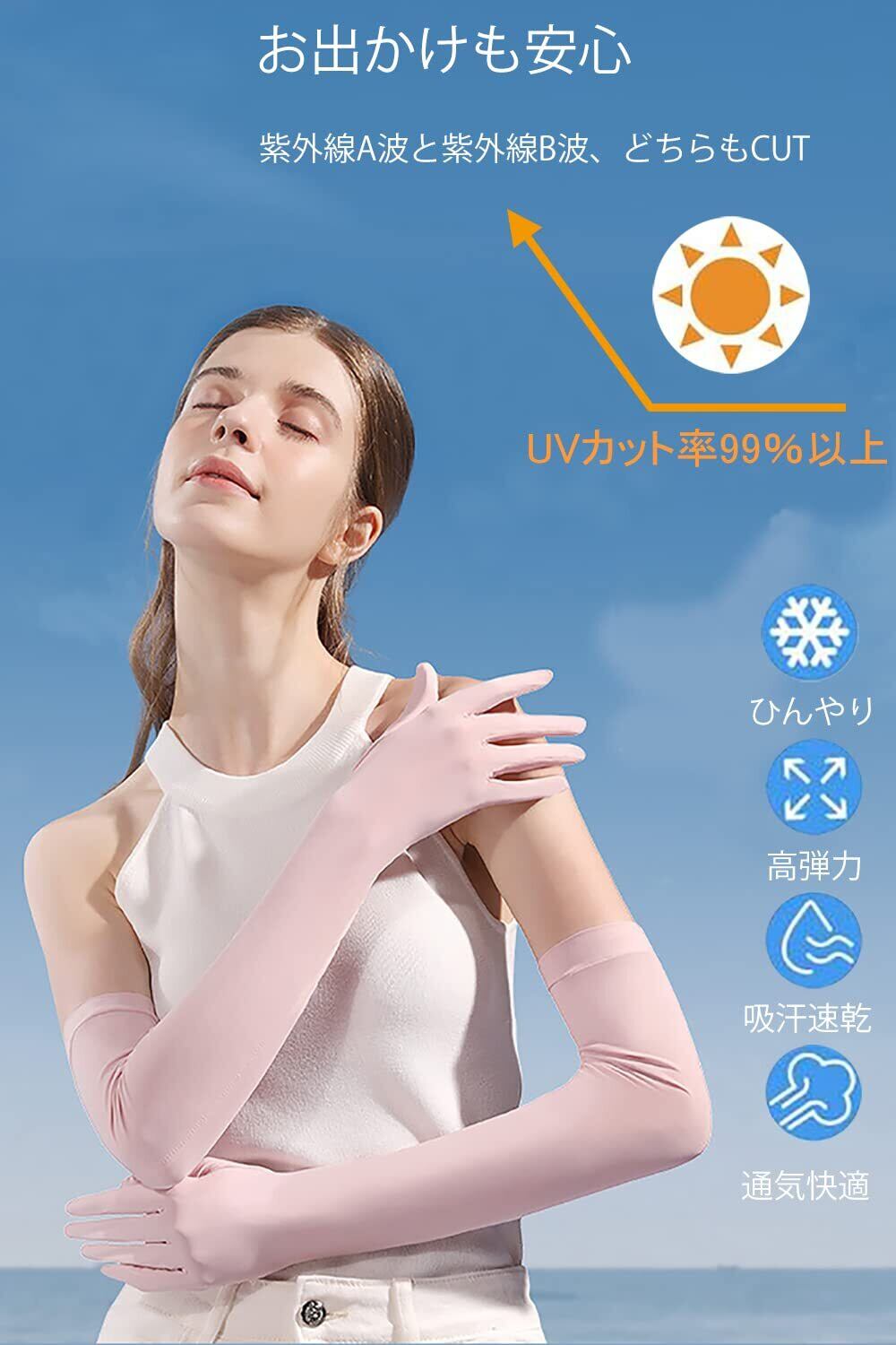 [Ycytlying] アームカバー 夏 レディース UVカット 接触冷感 手袋 ロングUV手袋 ひんやり 吸汗速乾 アームカバー 可愛い 伸縮性 通気性 腕カバー サイズ調節可能 日焼け対策 通勤 通学 運転 アウトドア スポーツ