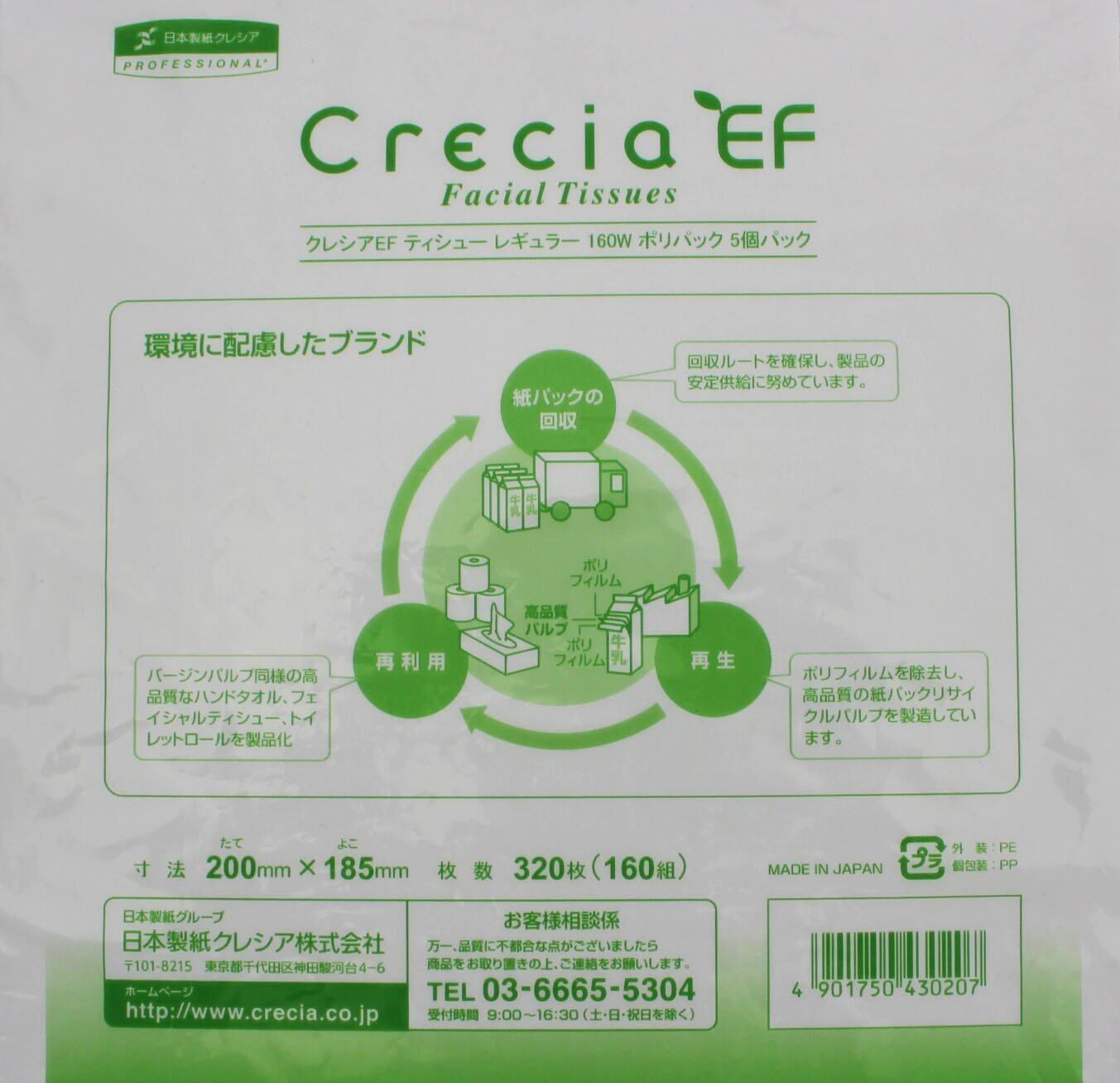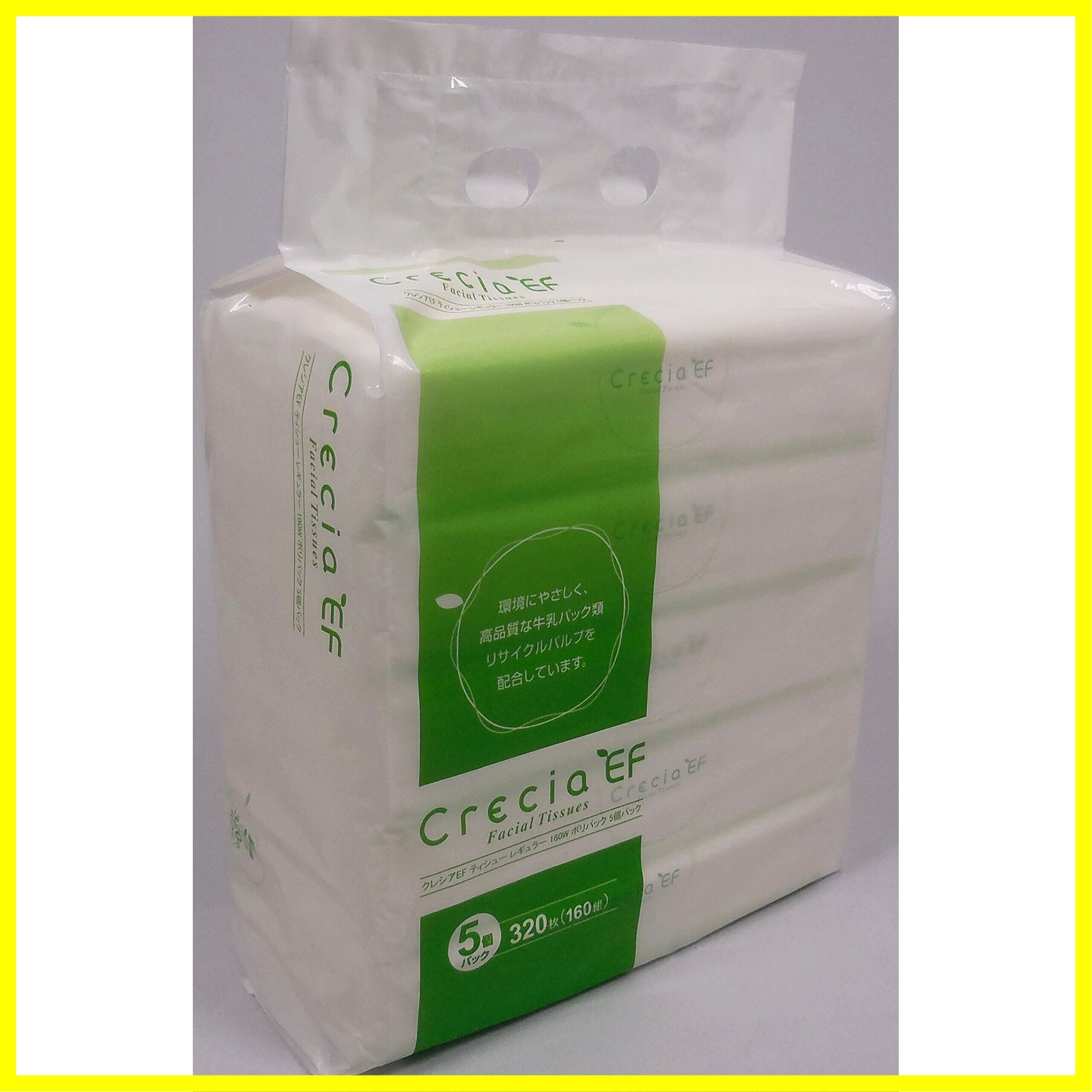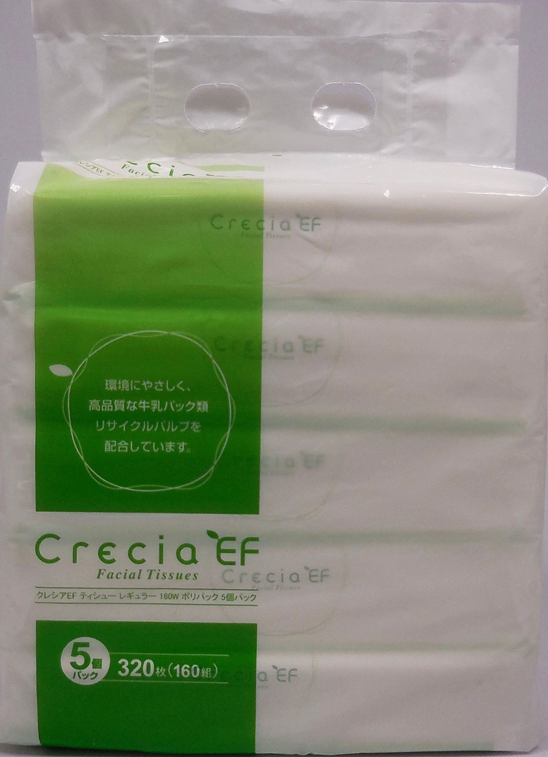 ティッシュペーパー 320枚(160組) 5箱 クレシアEFティッシュ レギュラー ポリパック (業務用)